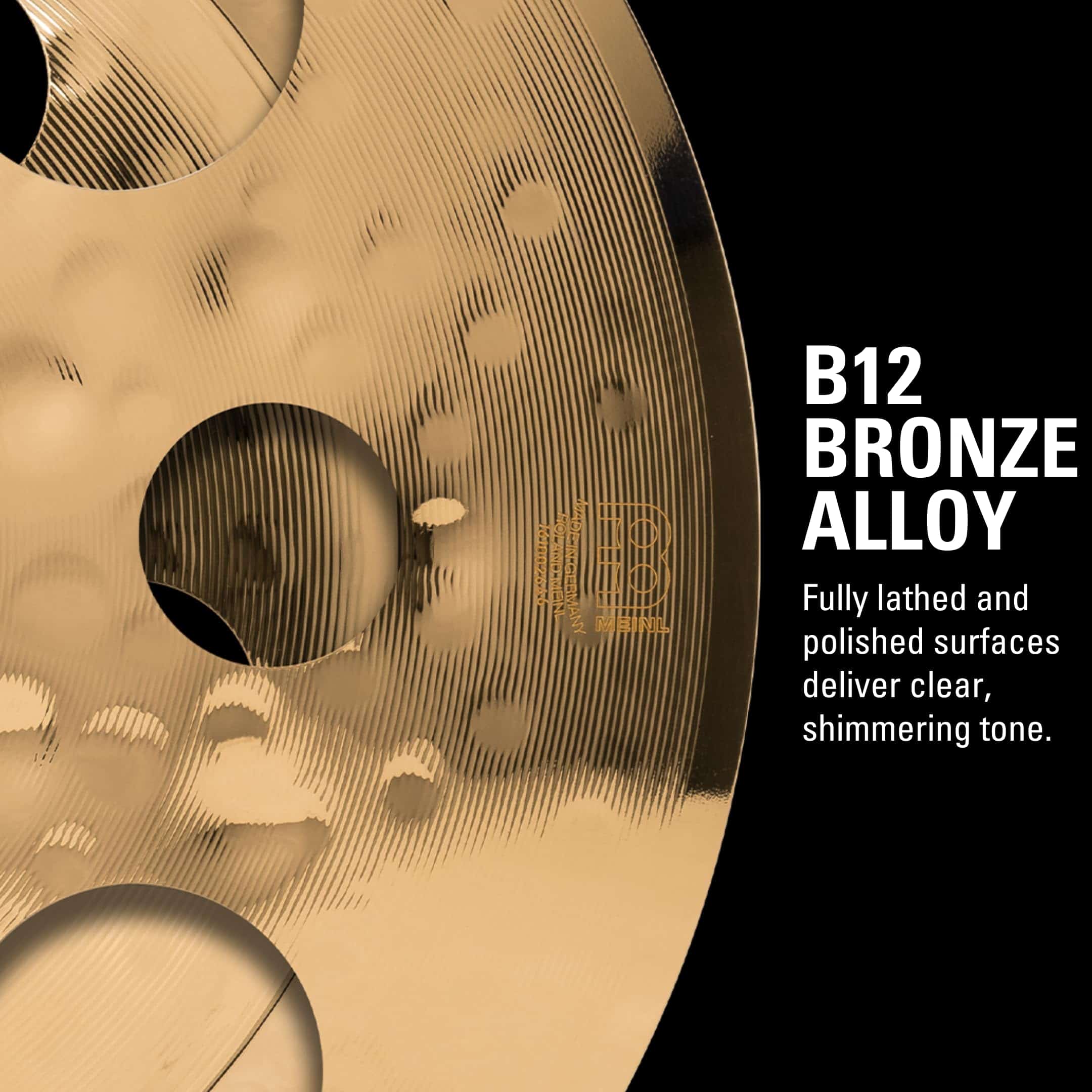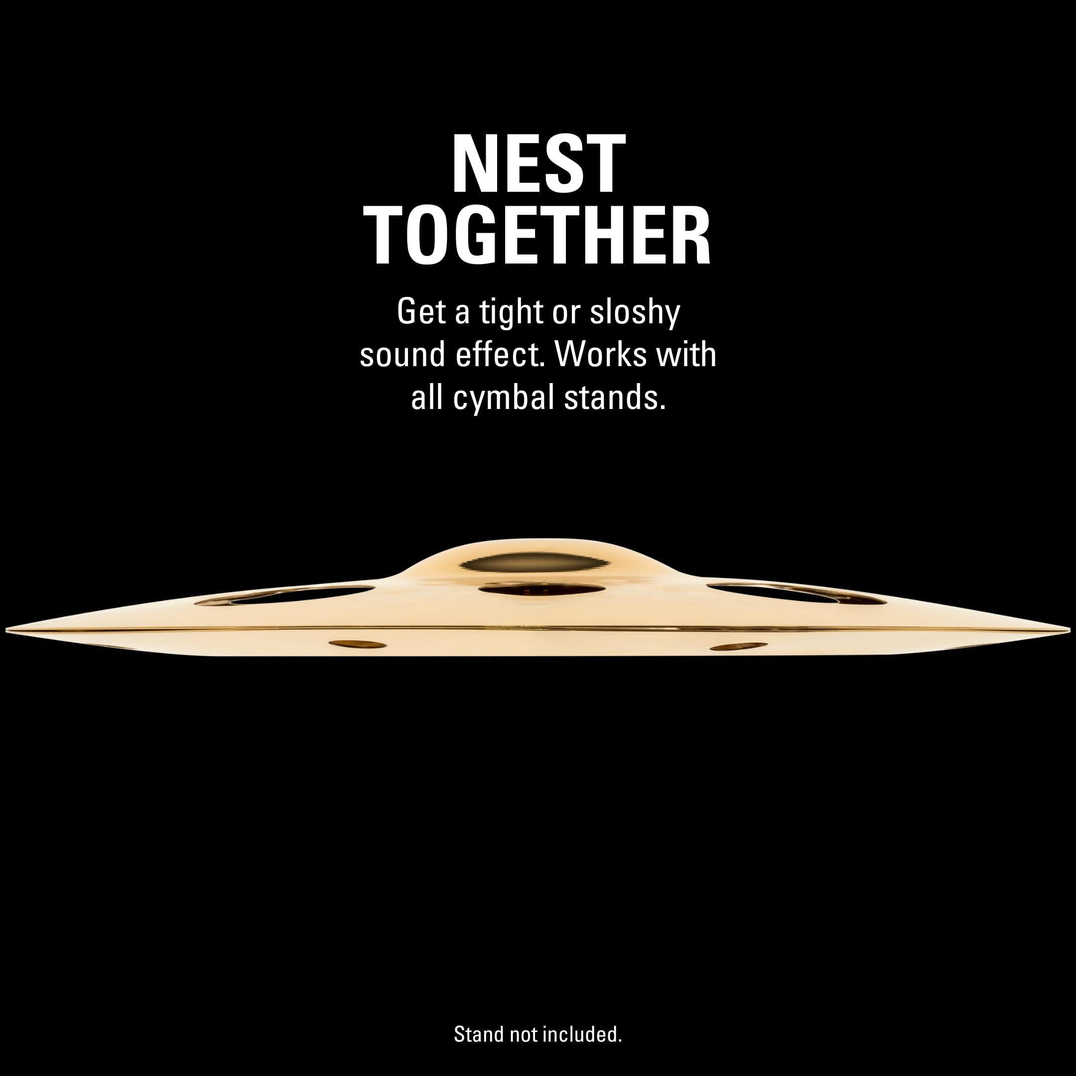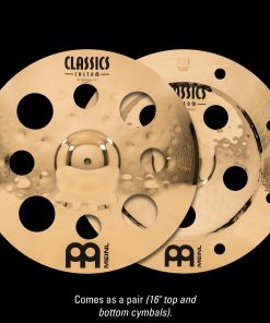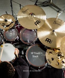 Apilar platillos colocándolos directamente uno sobre otro es una excelente manera de cambiar instantáneamente tu sonido. El stack Meinl classics custom 16 consiste en un plato de efecto tipo trash de 16″ y un plato China trash de 16″ de la línea Classics Custom. Con ambos platillos colocados correctamente, el stack ofrece un sonido de trash brillante y cortante con una sostenibilidad corta. El tamaño más grande de los dos platillos hace que este stack sea ideal para efectos de crash riding. Los agujeros especialmente cortados en cada platillo secan el sonido y eliminan cualquier sobretono o zumbido. La configuración fue imaginada y probada por Meinl cymbal RD, con el objetivo de producir un stack preempaquetado que sea tanto sonora como físicamente divertido de tocar. Este stack más grande se siente genial en la parte superior de la baqueta. El crash de 16 trash y el China de 16 trash de la línea Classics Custom son superventas dentro de la familia de platillos Meinl. Son platillos excelentes para tocar por sí solos también.