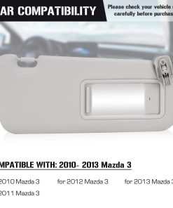 Par de Viseras para el lado del Conductor Izquierdo y Pasajero Derecho para Mazda 3 2010 2011 2012 2013 Gris sin Luz de Repuesto BBM2-69-320C-75. Este par de viseras de alta calidad está diseñado para proteger a los ocupantes del vehículo de la intensa luz solar, ofreciendo un efecto de enfriamiento mientras se conduce. Fabricadas con materiales duraderos, estas viseras proporcionan una mayor resistencia y durabilidad. Son reemplazos directos para la parte número BBM2-69-320C-75. La instalación es sencilla y rápida, asegúrese de verificar la compatibilidad completa del producto antes de realizar la compra. El color de las viseras es gris y vienen sin luz. La garantía de 12 meses ofrece seguridad y confianza al comprar este par de viseras para su Mazda 3. ¡Proteja a sus pasajeros y a usted mismo con estas viseras de calidad!