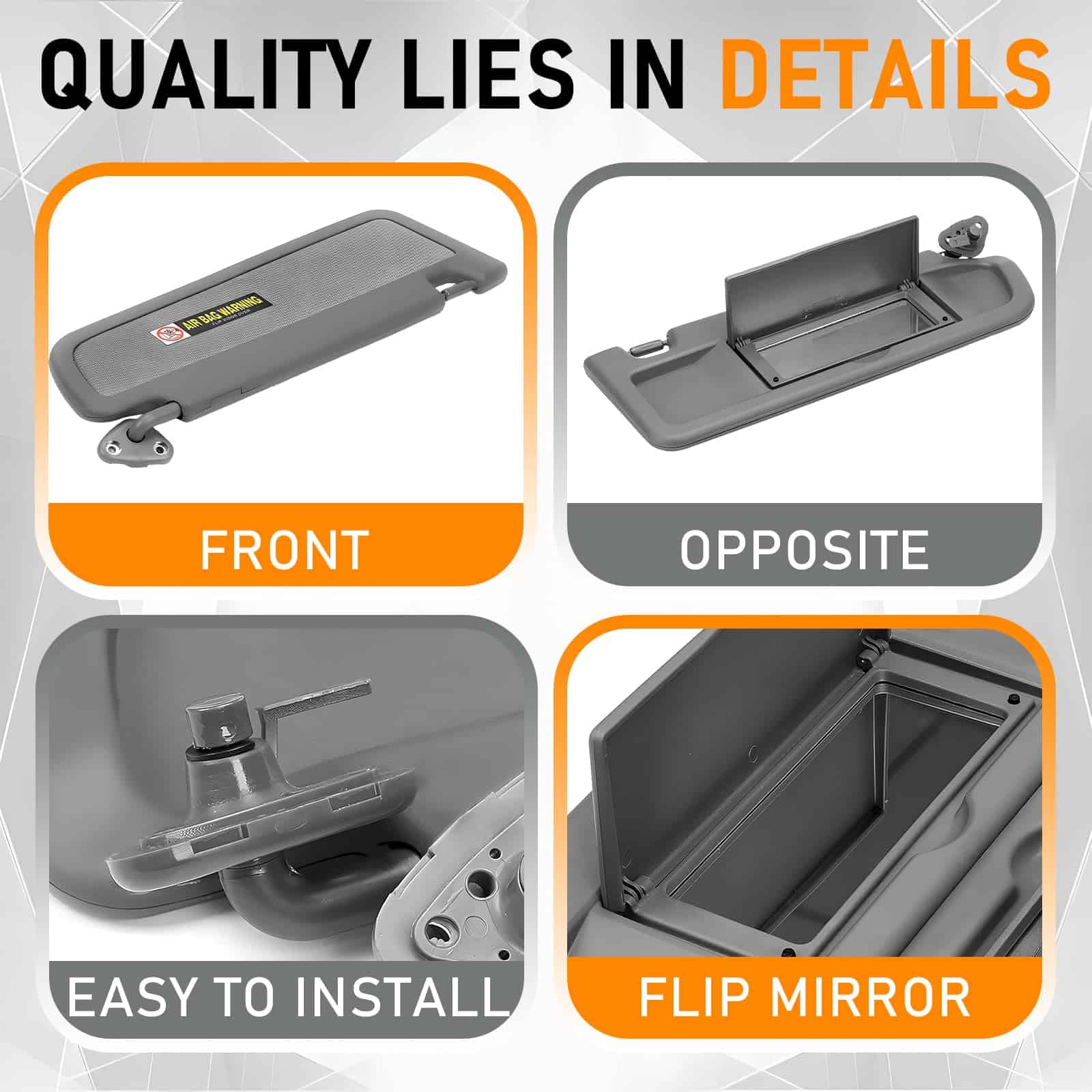 1. FUNCION – La visera para el sol está diseñada para evitar el deslumbramiento del sol y se puede mover hacia adelante y hacia atrás para ajustar la exposición del sol a los ojos y evitar accidentes de tráfico. Protegiendo así la seguridad personal del conductor.
