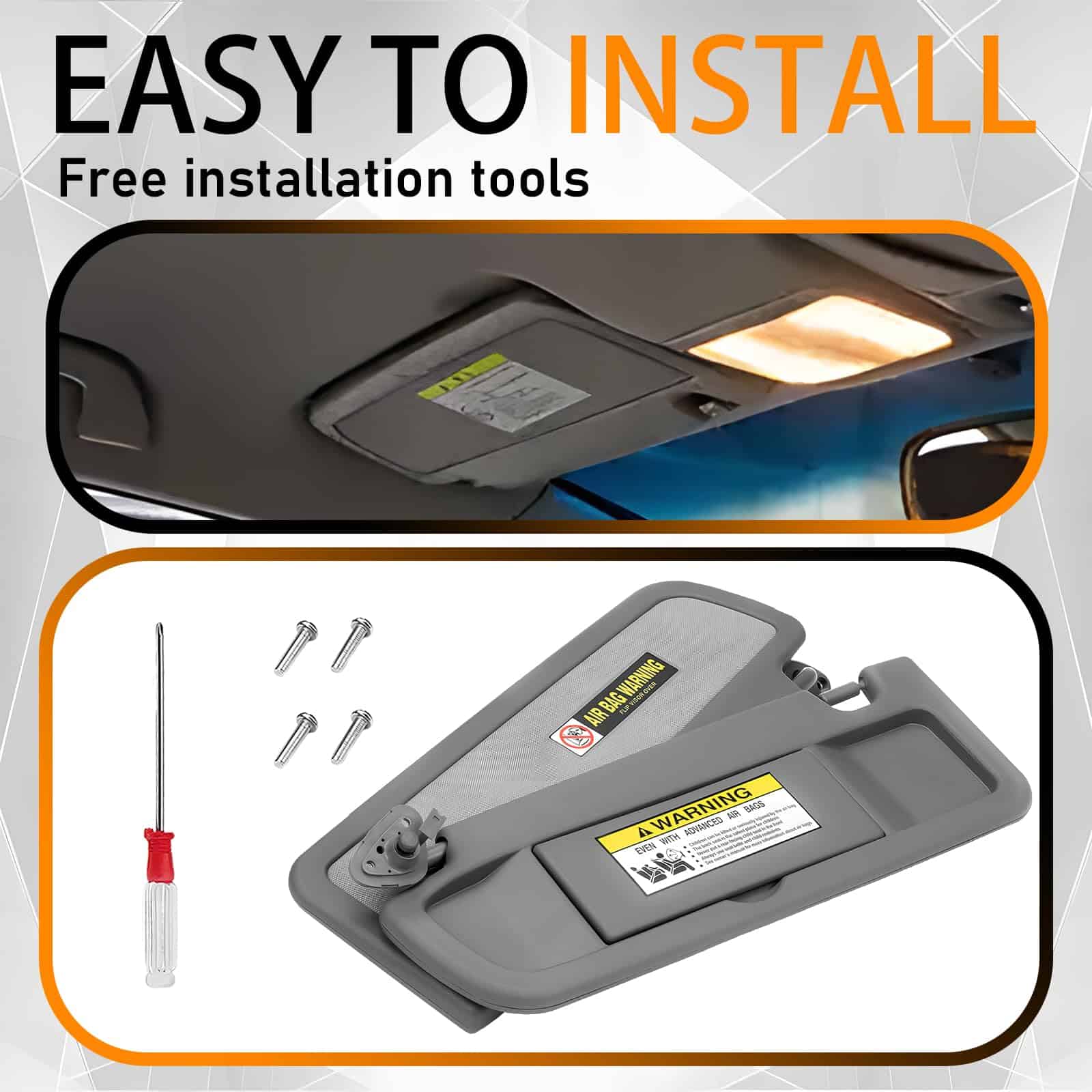 4. INSTALACIÓN – Le daremos un destornillador para ayudarlo a instalar la visera para el sol. El diseño con espejo incorporado es brillante y transparente, lo que puede ayudarlo a organizar su postura en cualquier momento y brindarle más comodidad a su vida diaria.
