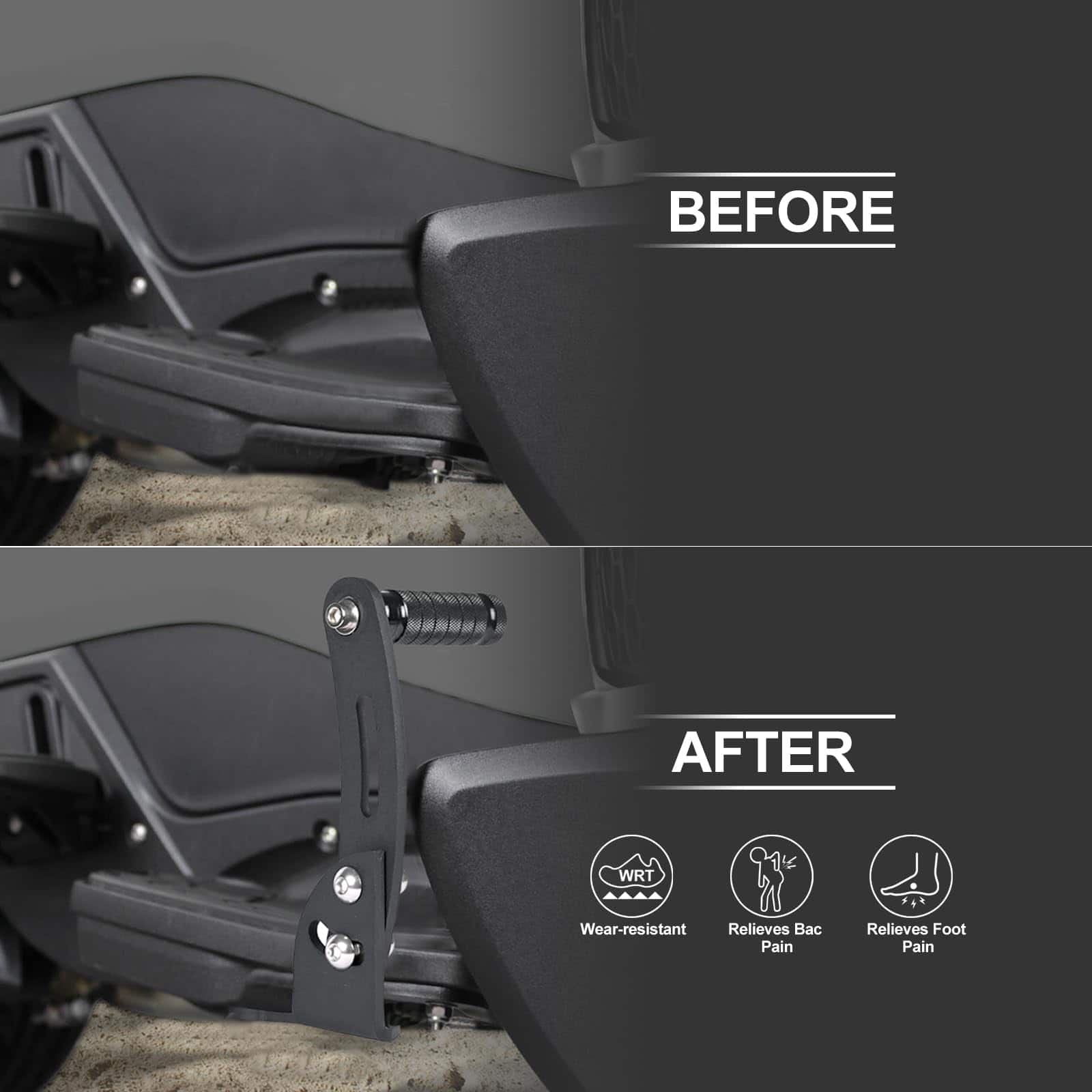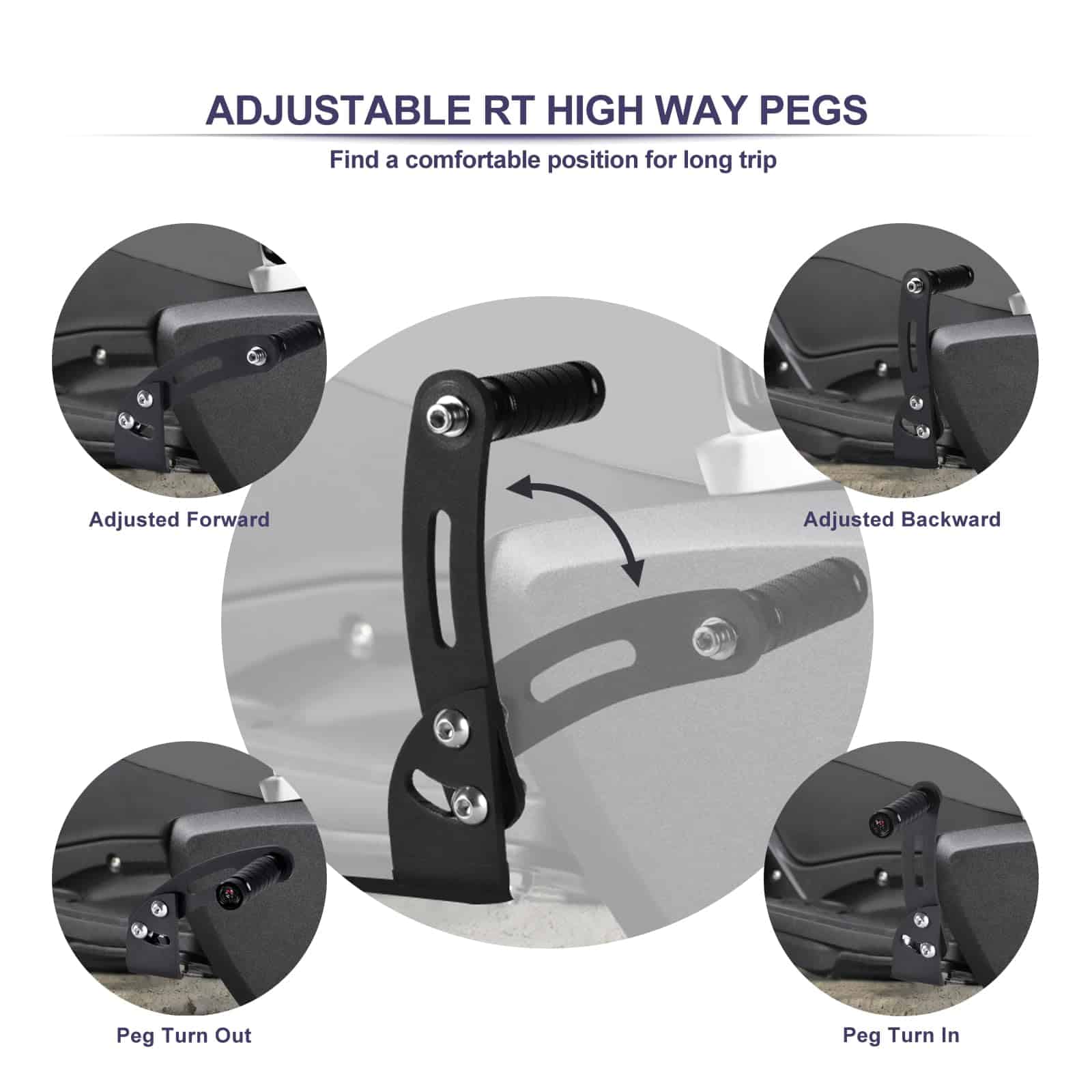 4. ¡CONDUCE CON COMODIDAD! En comparación con la RT sin reposapiés de carretera, tener reposapiés de RT proporciona un viaje más cómodo para su viaje largo, no solo le proporciona la posición de conducción más cómoda, sino que también alivia efectivamente el malestar en los pies y la espalda de la conducción a larga distancia. Para los conductores de piernas largas, nuestros reposapiés de RT son un accesorio de conducción imprescindible. Y las extensiones de reposapiés de RT para una posición de pie mucho más equilibrada mientras se cruza y mejoran la seguridad de conducción.