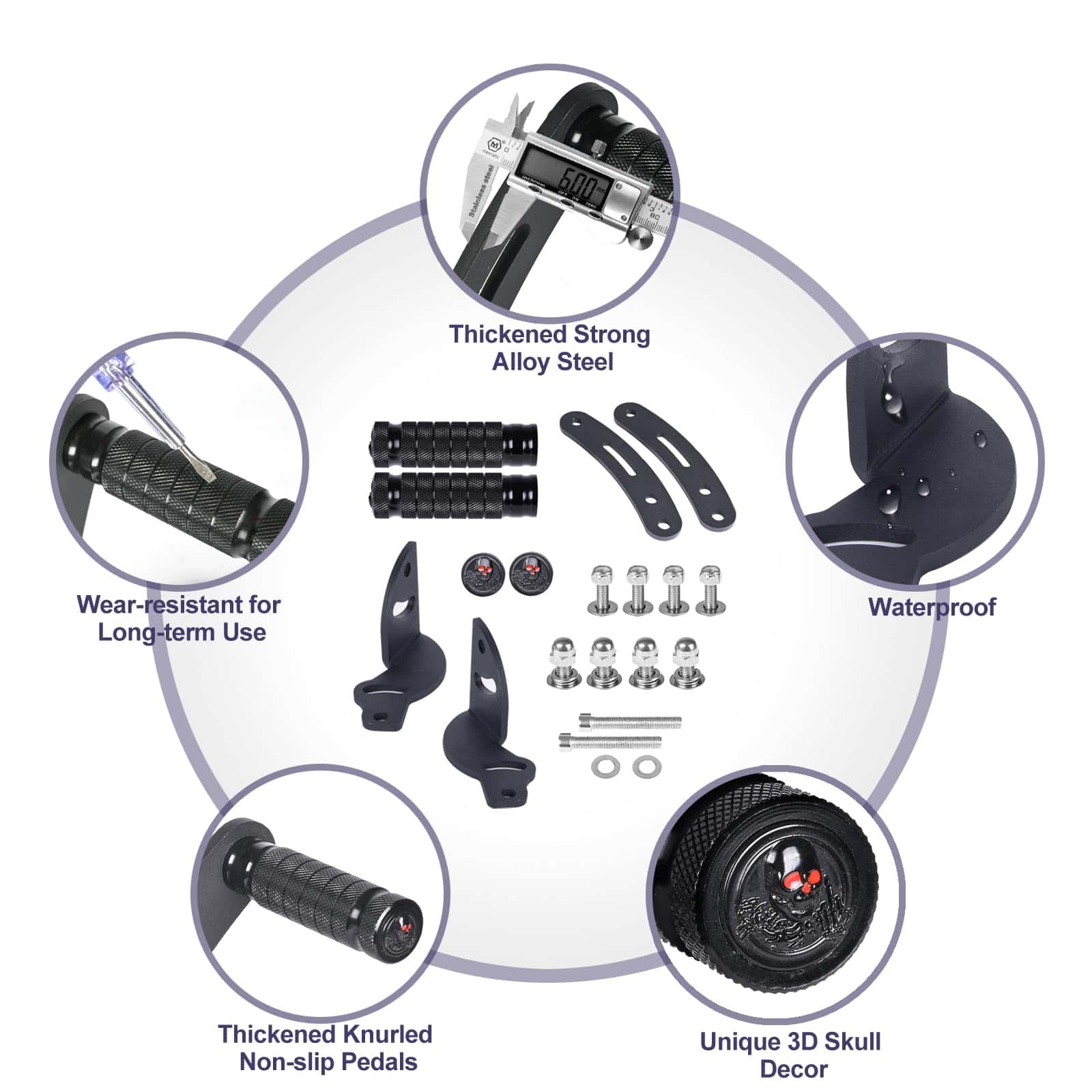 5. ¡DECORACIÓN ÚNICA DE CALAVERA 3D! ¡El patrón de calavera 3D en los reposapiés de carretera para Can Am Spyder RT trae una visualización más realista que otros en el mercado! Pero ¿por qué diseñamos el patrón de calavera? ¡Tenemos respuestas para ti! 1. La calavera es un símbolo de inmortalidad, el espíritu de la conducción es inmortal. 2. Es una forma visual de atraer a personas afines y alejar a aquellos que no se identifican con nosotros. 3. El simbolismo de la calavera expresa nuestro compromiso hasta la muerte, con la motocicleta, con nuestro club y con nuestra familia.