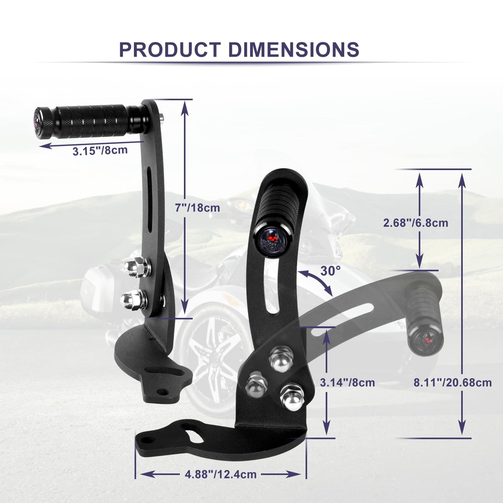 3. ¡REPOSAPIÉS AJUSTABLES PARA SPYDER RT! Los reposapiés de carretera para Spyder RT son fácil y libremente ajustables, lo que les permite ajustarse hacia adelante y hacia atrás 30 grados, 3,5″ de diferencia de altura, ajustes de ángulo izquierdo y derecho, lo que le permite ajustar los reposapiés a su nivel de confort. Diseño de estriado profundo para un agarre efectivo y mejorado en los pies. Además, los pedales de pie más anchos y más largos para Spyder RT envuelven completamente el borde del zapato, permitiendo que los pies del conductor descansen más plenamente.