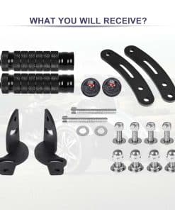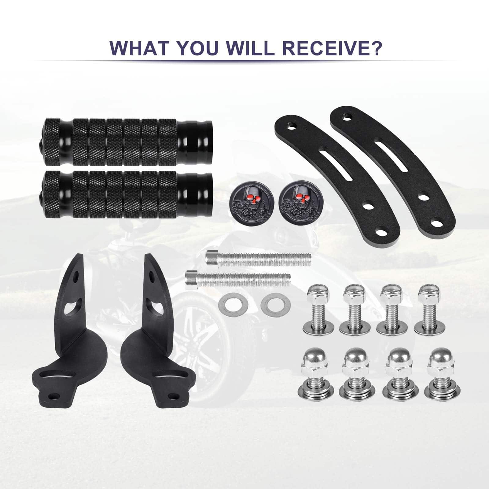 1. ¡GRANDES REPOSAPIÉS DE CARRETERA PARA SPYDER RT! El par de reposapiés de carretera se adapta a los modelos de tablero de piso Can Am Spyder RT 2010-2019 (Tableros de fábrica). NOTA: No son compatibles con los modelos 2020+. Contenido del paquete: reposapiés de piso derecho e izquierdo RT, juego de hardware de montaje, 2 pegatinas de calavera 3D, instrucciones de instalación.