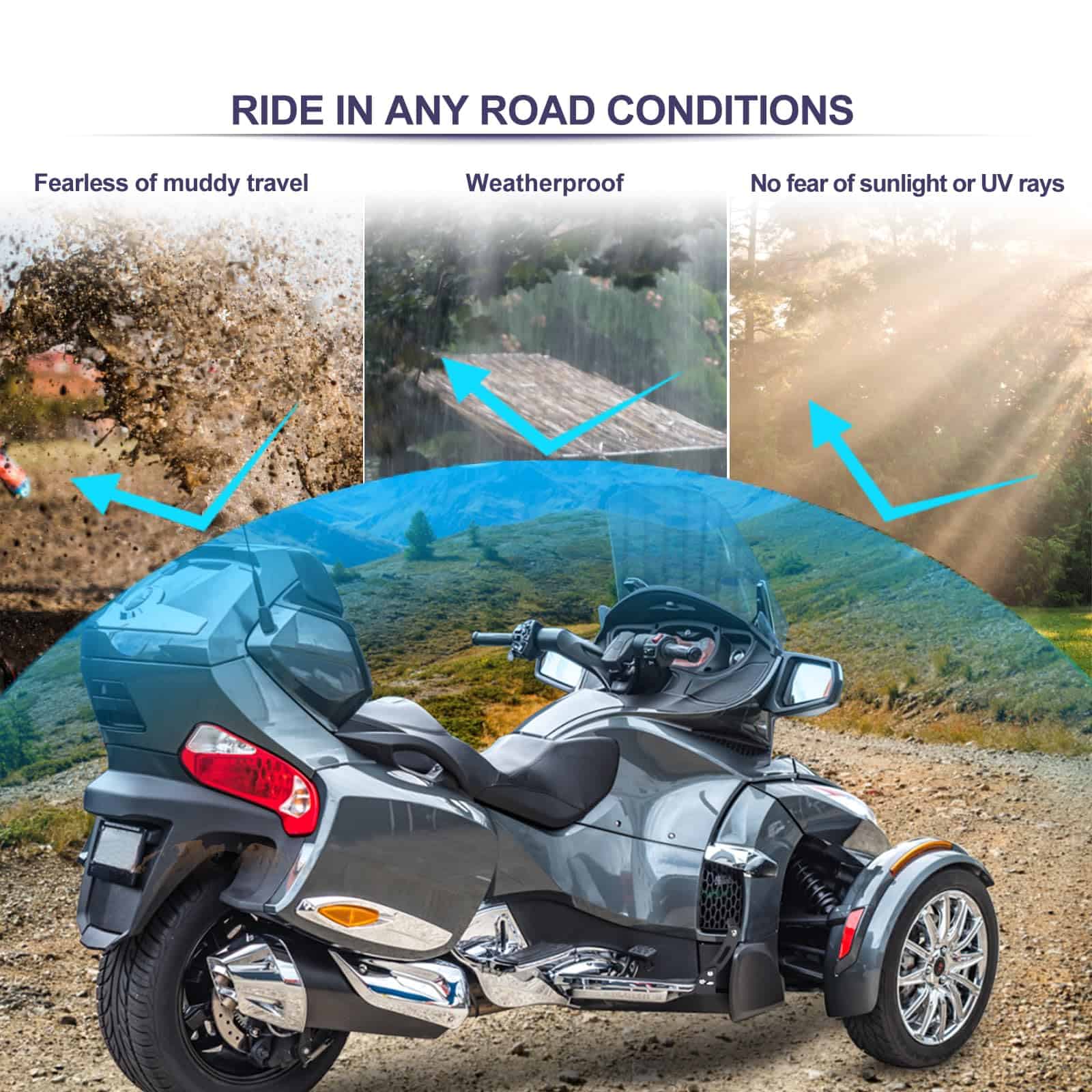 2. ¡RESISTENTE REPOSAPIÉ PARA SPYDER RT! Los reposapiés de carretera para Spyder RT están hechos de acero de aleación de calidad para garantizar durabilidad, también no son fáciles de romper y son resistentes al calor. Recubrimiento de polvo brillante en estos reposapiés de carretera, crea un acabado de capa suave y resistente. El recubrimiento en polvo resultante es resistente a la intemperie, duradero, resistente a la corrosión y resistente a la luz UV, tiene una mayor durabilidad que la pintura ordinaria. Los orificios cortados con láser están conectados precisamente a los orificios de fábrica para garantizar una instalación precisa.
