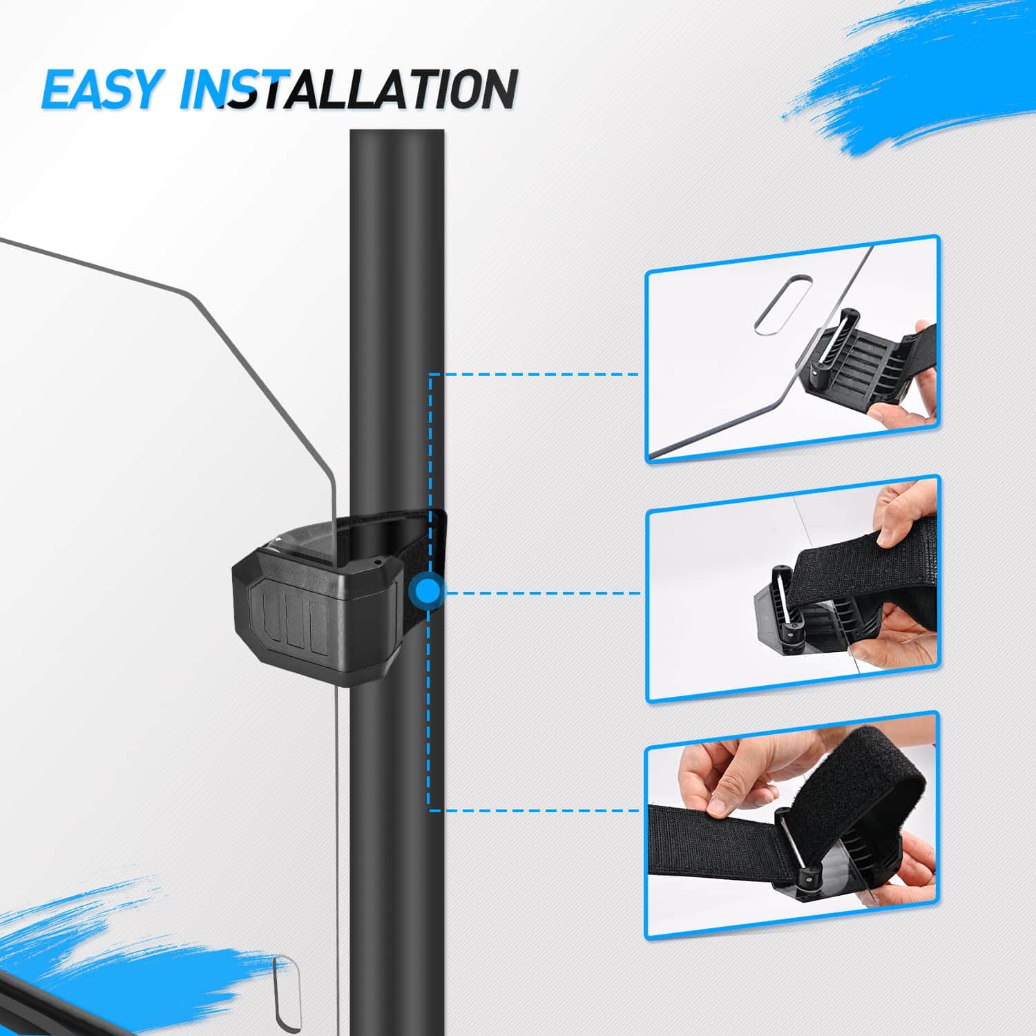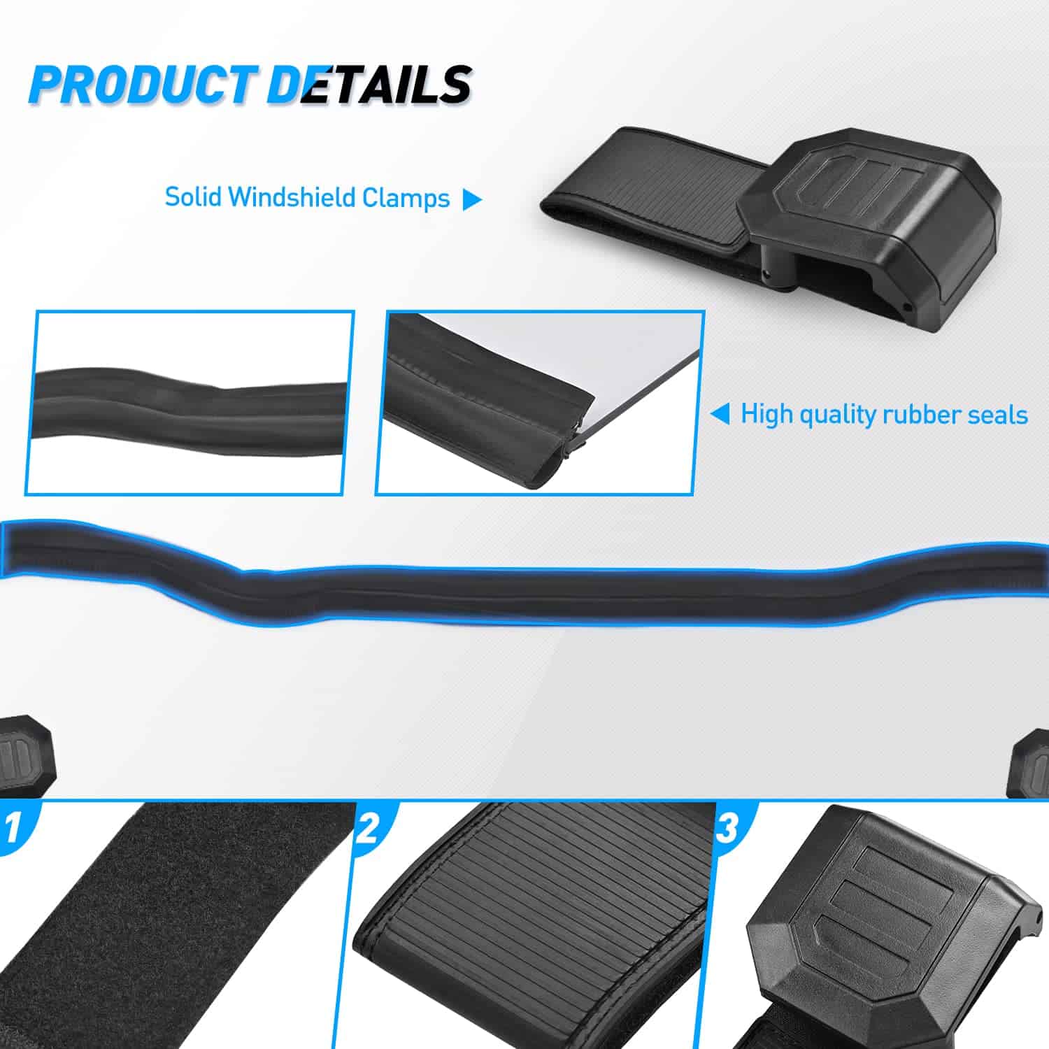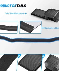 4. Instalación sencilla: Nuestro parabrisas se sujeta con correas autoadhesivas ensanchadas para una instalación y extracción sencillas, mientras que las almohadillas del parabrisas aseguran la abrazadera al vehículo y evitan la fricción.