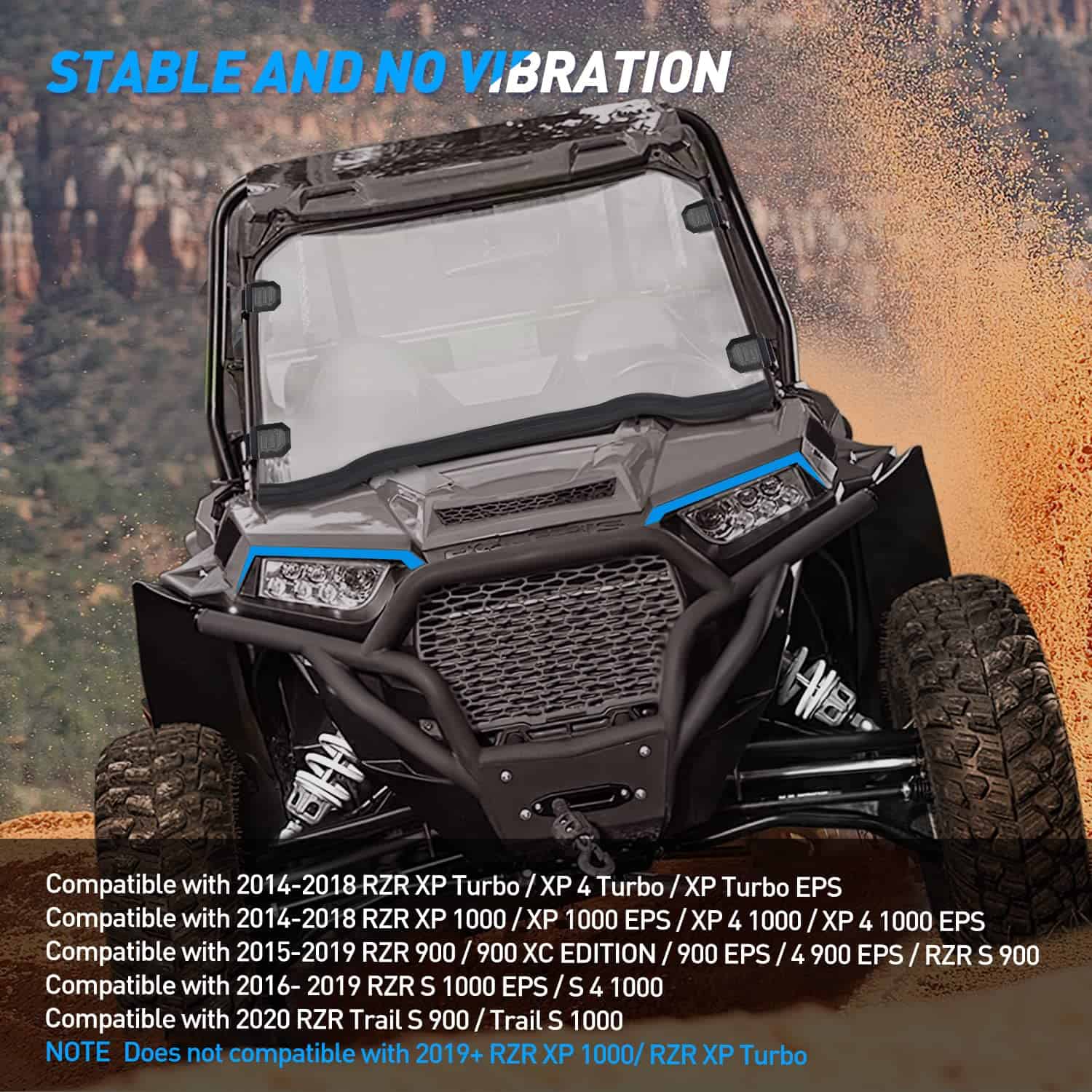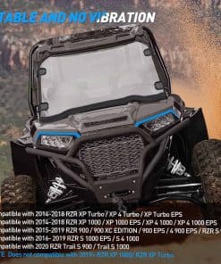 1. Compatibilidad: Nuestro parabrisas solo es compatible con Polaris RZR 1000/XP 1000/4 XP Turbo/15-18 RZR 900/S 900.