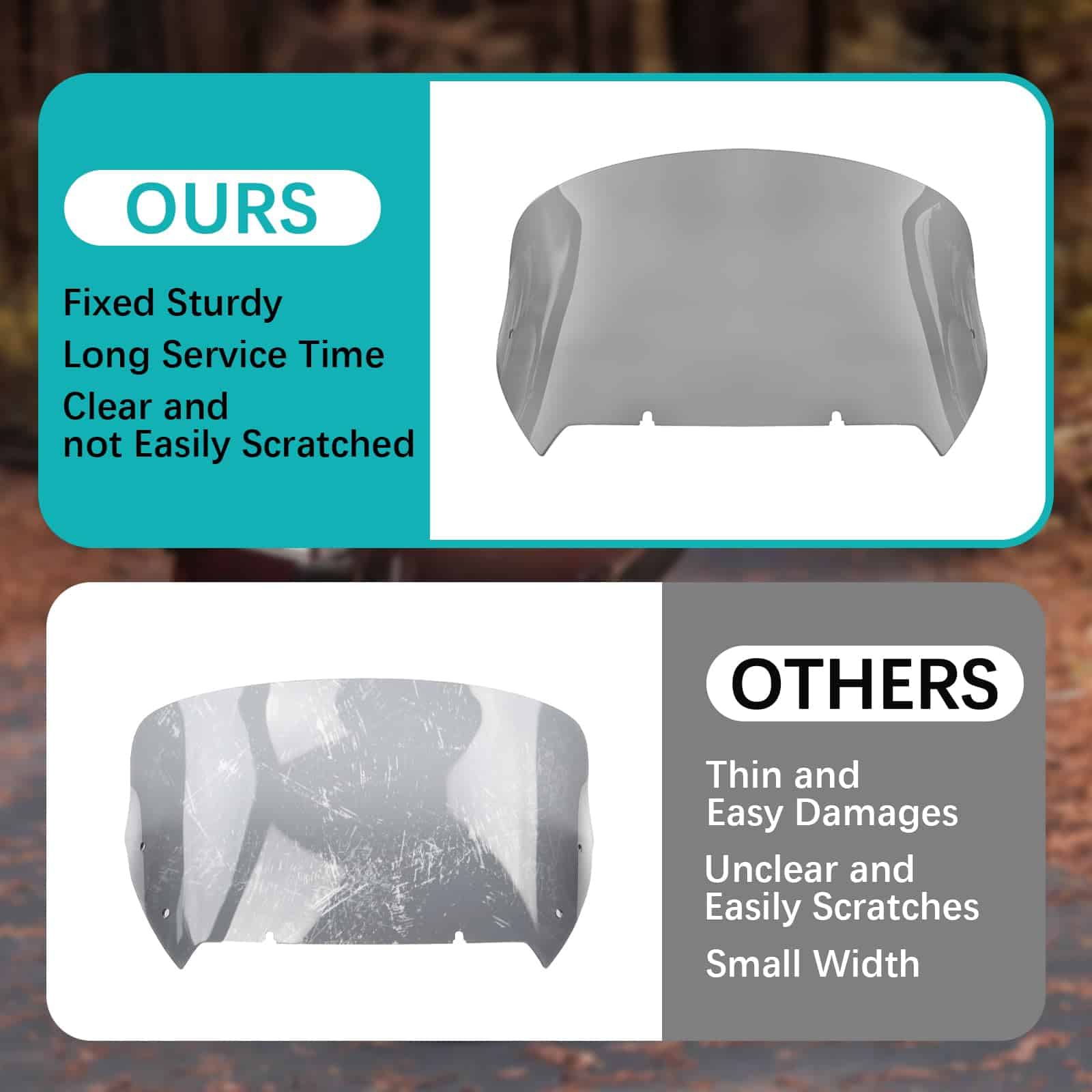 Los parabrisas del road glide 2024 de Harley están hechos de plástico ABS de alta calidad, que es flexible y resistente, con una textura dura, resistencia a la arena y las piedras, no es fácil de rayar o agrietar, y seguro de montar.