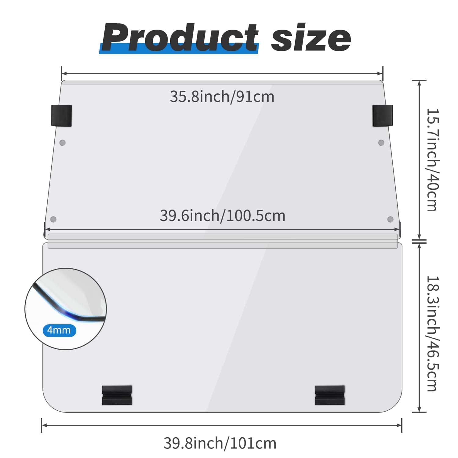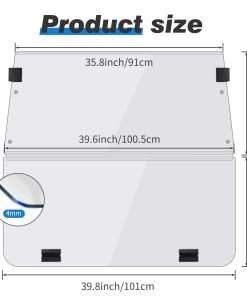 2. Parabrisas Transparente: Acrílico de alta claridad para mejor visibilidad y reducción de deslumbramiento y durabilidad. Dimensiones aproximadas: 39.25″W X 36.75″H. Bisagras de poliuretano de alta calidad.