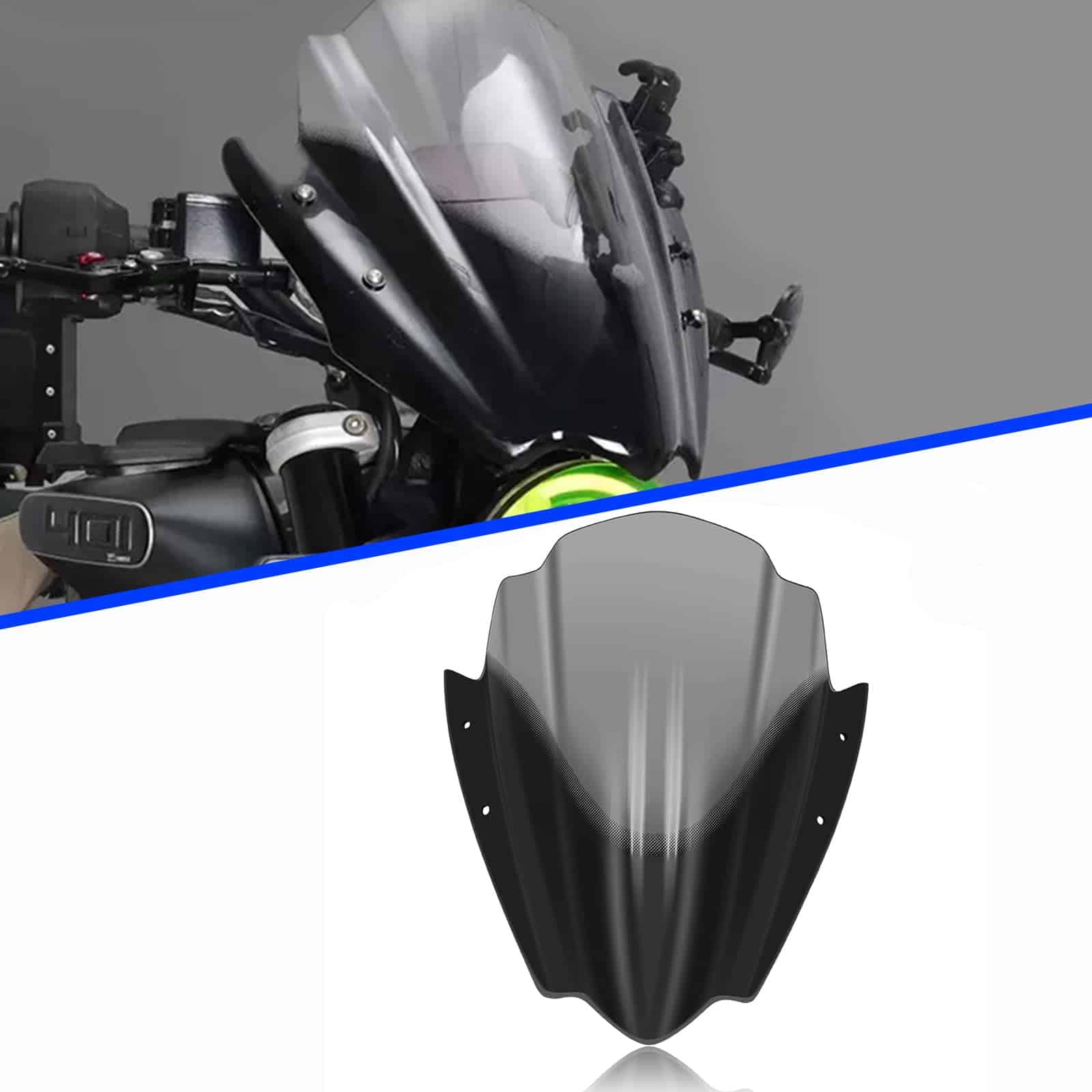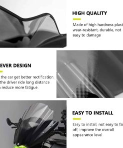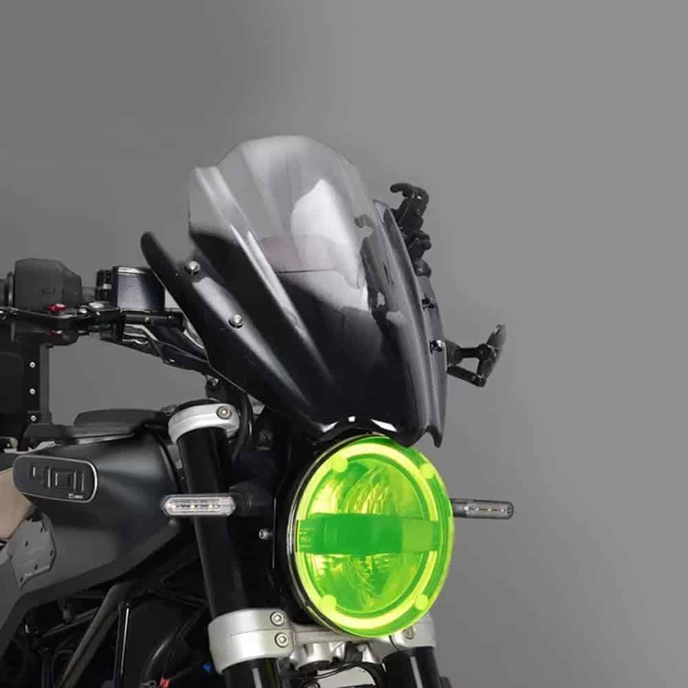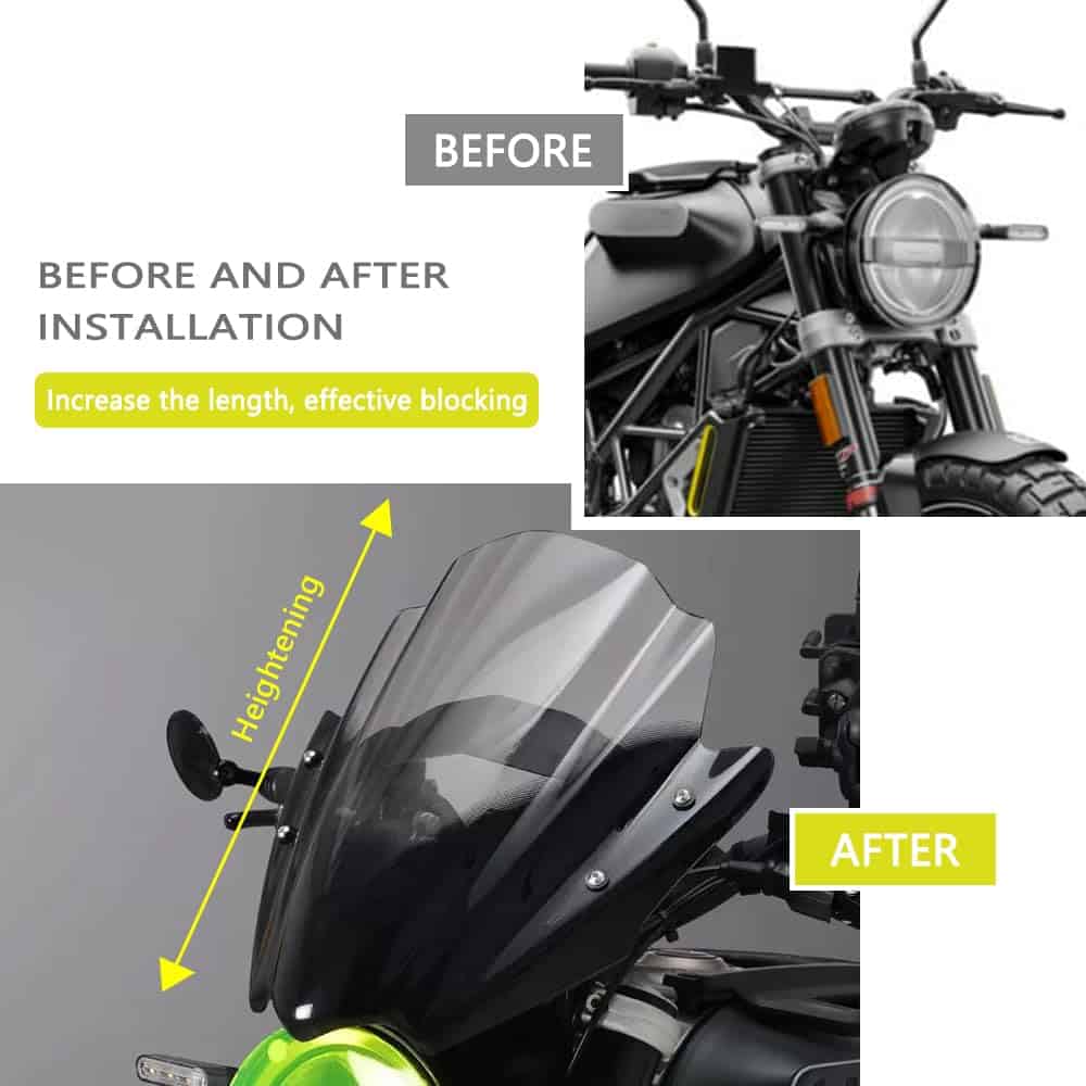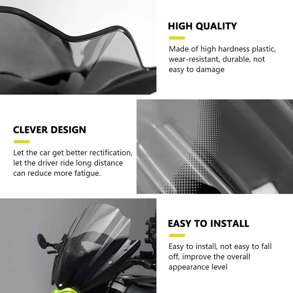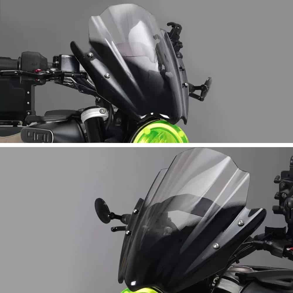 Una pantalla alta/abatible proporcionará una mejor deflexión del viento que una pantalla estándar, redirigiendo el flujo de aire por encima de la moto, reduciendo la ráfaga de viento que los conductores pueden sufrir.