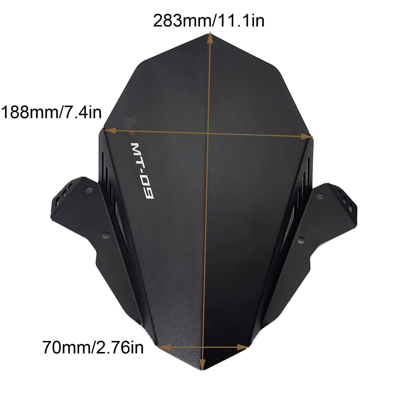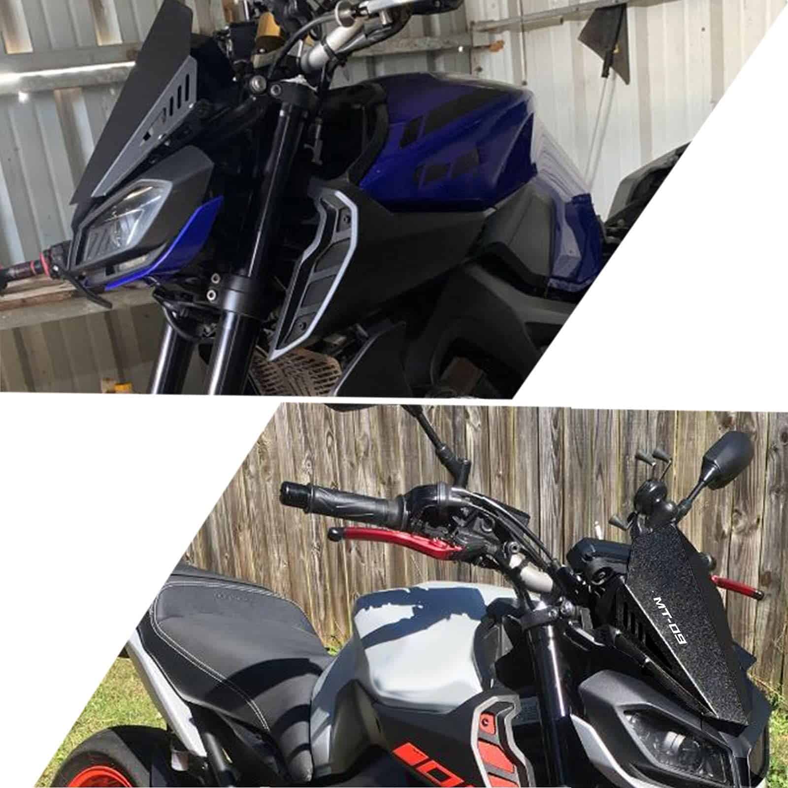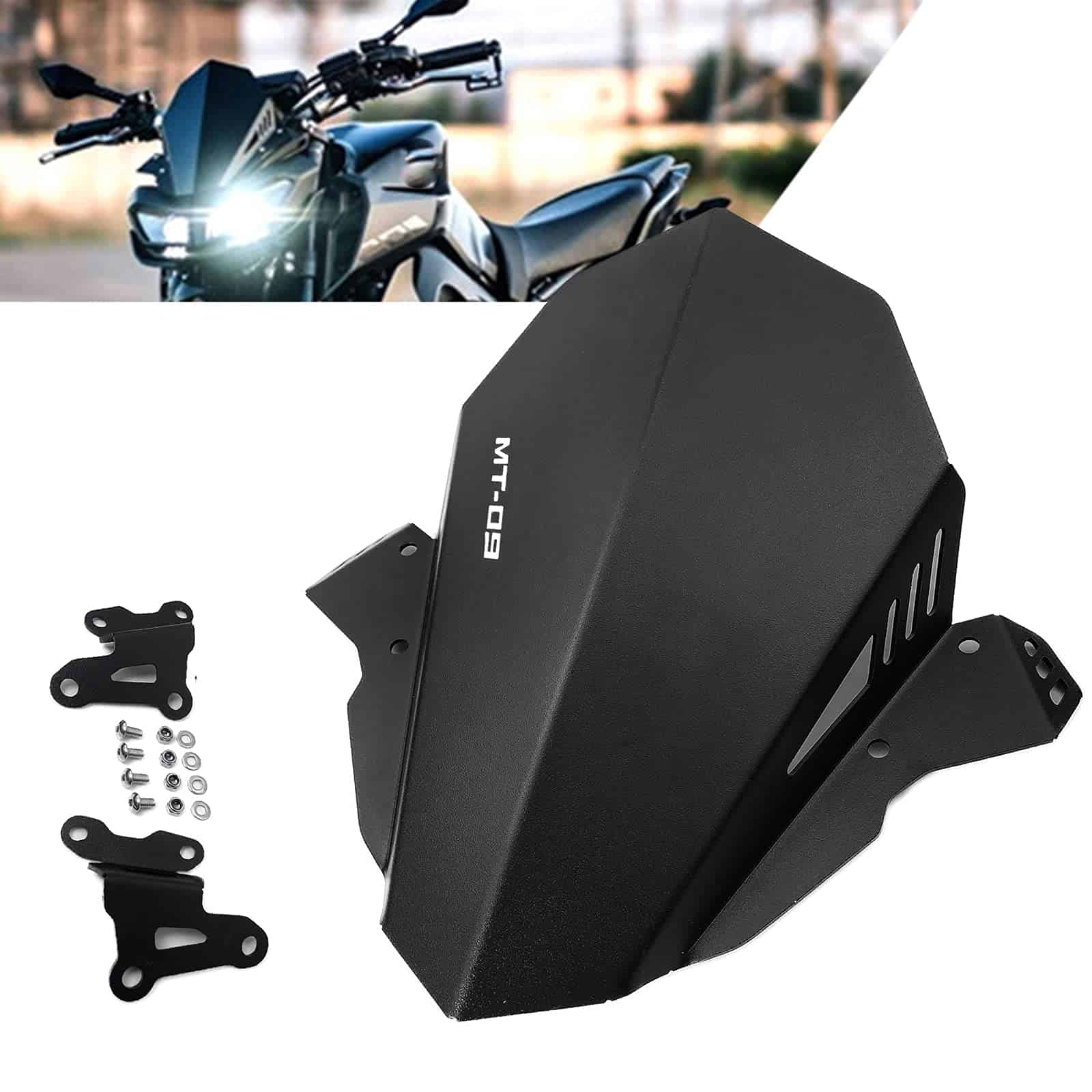 Ajuste Parabrisas de motocicleta para MT09 MT-09 FZ09 FZ-09 2017 2018 2019 2020 Descripción Fácil de instalar y puedes doblar ligeramente para alinear con los tornillos. No requiere ninguna modificación, corte o perforación. Hecho de aleación de aluminio premium y anodizado, resistencia a la corrosión y nunca se desvanece. El logo ‘MT09’ grabado con láser muestra la singularidad de tu motocicleta. Este parabrisas puede ayudar a desviar más viento para un viaje más cómodo, mejorar tu seguridad en la carretera. El color negro clásico y el sencillo diseño del logo ‘MT09’ hacen que tu motocicleta sea más única y elegante. Características Condición: 100 por ciento nuevo Material: Aleación de Aluminio Color: Negro Paquete incluido: 1 X parabrisas Tornillos de instalación