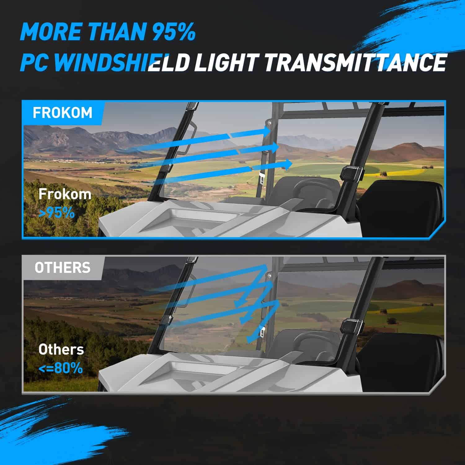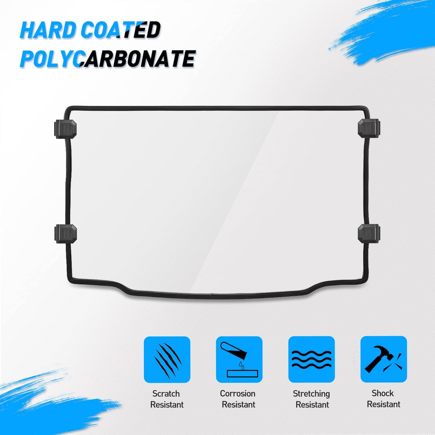 2. Durabilidad inigualable: Hecho de material PC de 1/4 de pulgada, nuestro parabrisas es más resistente que el vidrio y soporta cualquier entorno exterior.