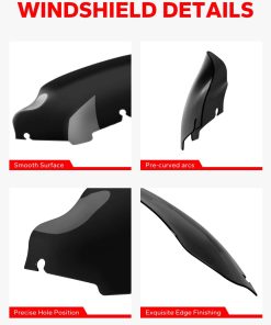Piezas de repuesto de alta calidad para Harley Touring 1996-2013. Este parabrisas negro de 6″ está diseñado para adaptarse a la perfección a tu Harley Electra Street Glide Touring, excluyendo los modelos FLHTK Electra Glide Ultra Limited Road Glide. Su altura de 6″ y su diseño siguen la línea de la horquilla de la moto para un aspecto estético y un ajuste perfecto. Fabricado con materiales duraderos y de alta calidad, este parabrisas garantiza una protección óptima contra el viento y los elementos. Su característico color negro puede ser visto a través en situaciones de luz intensa, sin embargo, en condiciones de luz normal es difícil ver a través de él. Fácil de instalar, este parabrisas es la opción perfecta para los entusiastas de las motos Harley Touring que buscan calidad y estilo.
