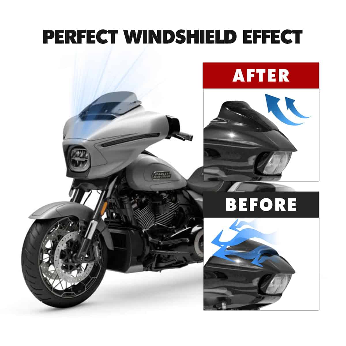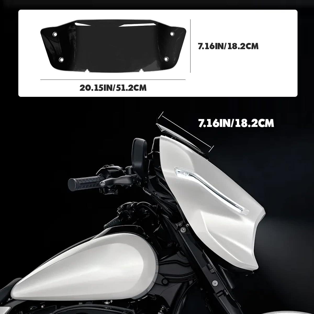 Parabrisas de 7″ negro compatible con Harley Davidson Tuoring CVO Street Glide FLHXSE 2023 2024 FLHX/I 2024 para accesorios de Road Glide 2023 2024. Fabricado en plástico ABS de alta calidad mediante moldeo por inyección de alta resistencia, con gran dureza y grosor para resistir impactos de alta intensidad sin romperse con facilidad. Su diseño aerodinámico permite controlar mejor el flujo de aire, mejorando la estabilidad y seguridad al conducir, protegiendo al motociclista de viento, piedras, escombros e insectos, lo que hace que la conducción sea más cómoda y segura especialmente en viajes largos. La instalación es sencilla ya que todas las piezas están preperforadas y se pueden instalar fácilmente con el hardware original del parabrisas. Ofrecemos una excelente garantía postventa en caso de daños durante la entrega o defectos de fabricación.