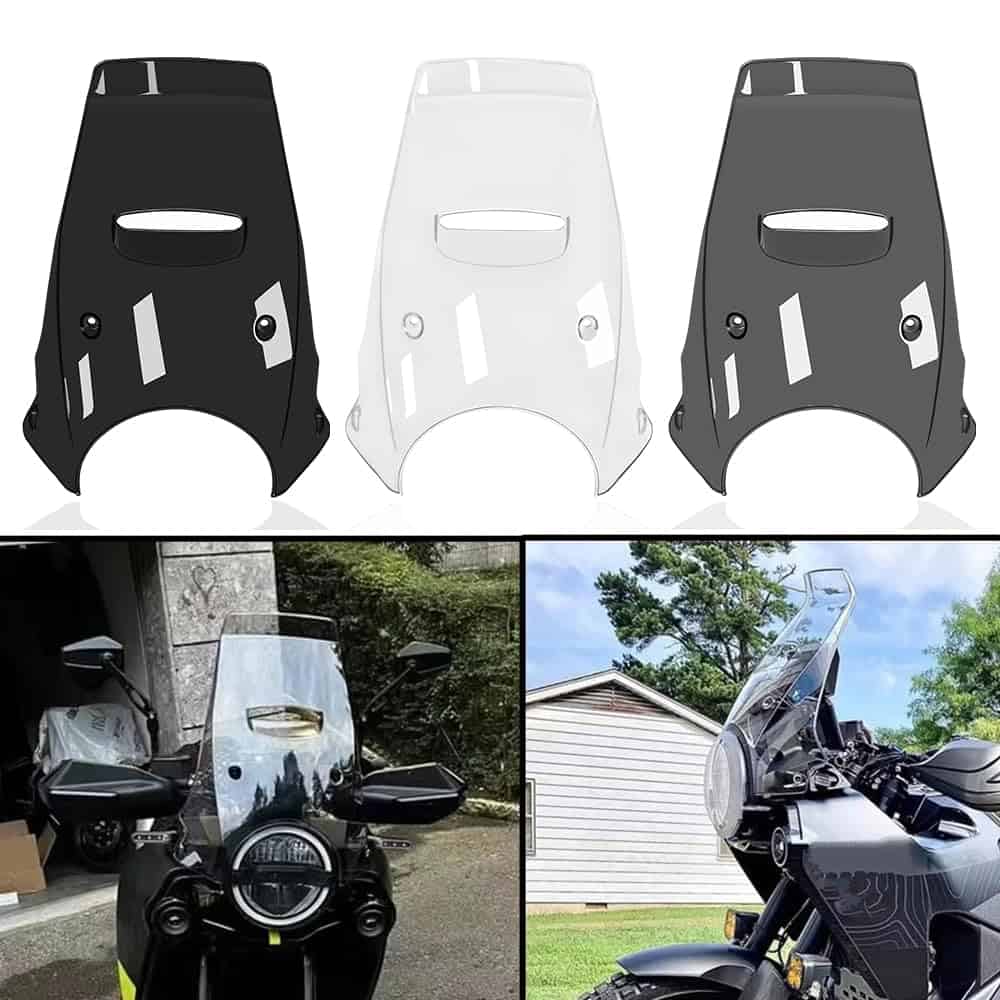-Parabrisas de una sola pieza. No hay necesidad de preocuparse por el agujero central que hace que el parabrisas funcione menos. Este agujero tiene un diseño aerodinámico. Está dispersando la resistencia y manteniendo el viento frío fuera del camino.