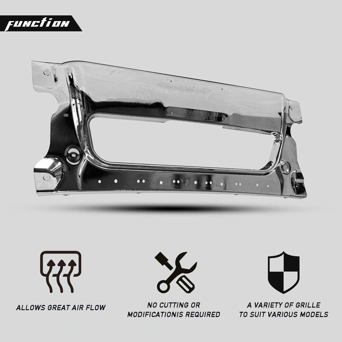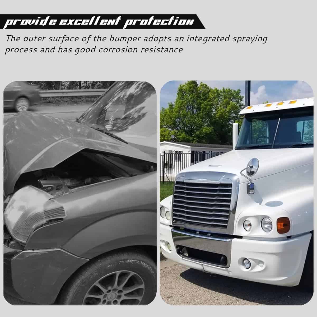 Compatible con Freightliner Century 2003-2015. El parachoques delantero cromado central para camiones semirremolque Freightliner Century está diseñado para brindar una protección excepcional y mejorar el aspecto de su vehículo. Fabricado con plástico de alta calidad (PP) de grado automotriz, este parachoques es resistente al desgaste, a la corrosión y puede soportar condiciones adversas. Además de su función protectora, el parachoques también cuenta con dos orificios para luces antiniebla, lo que le brinda la posibilidad de mejorar la iluminación de su vehículo. La instalación es sencilla, con montaje directo mediante tornillos. Se recomienda la instalación profesional para garantizar un ajuste perfecto y una protección adecuada. Proteja su Freightliner Century con este parachoques duradero y de alta calidad.