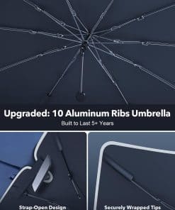 2. Durabilidad de grado militar: Hemos mejorado nuestra sombrilla con materiales de grado militar y patas de paraguas de cuero de alta calidad reforzadas con muelle para una durabilidad y protección sin igual. Nuestro diseño reimaginado elimina problemas comunes como costillas rotas, arañazos en el tablero y rasgaduras en la tela.
