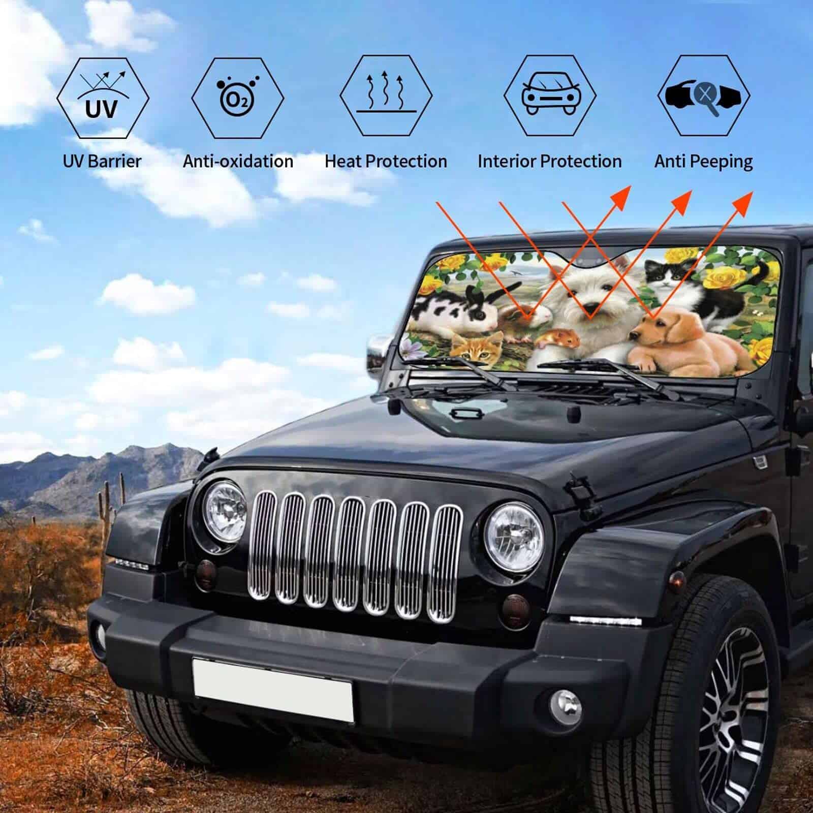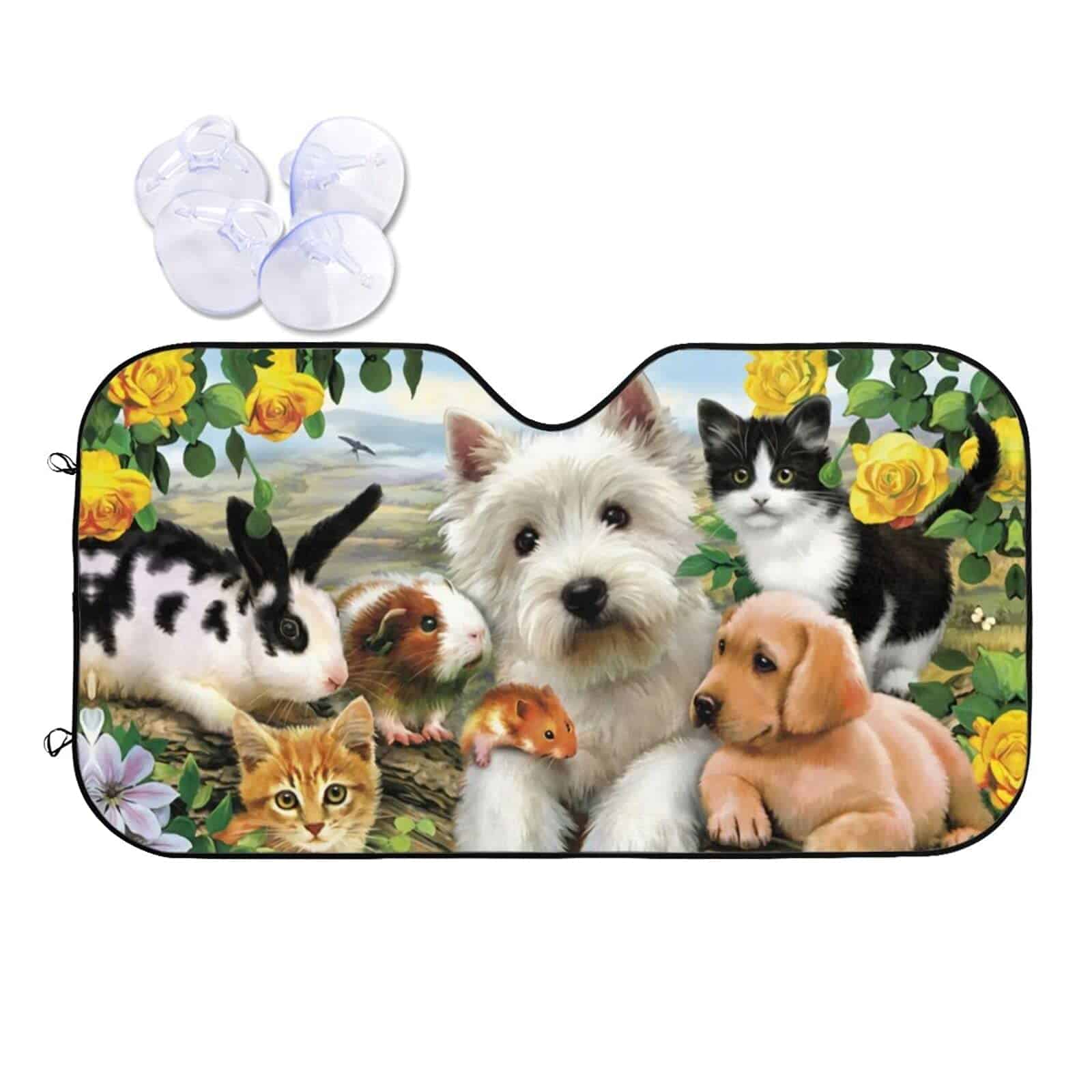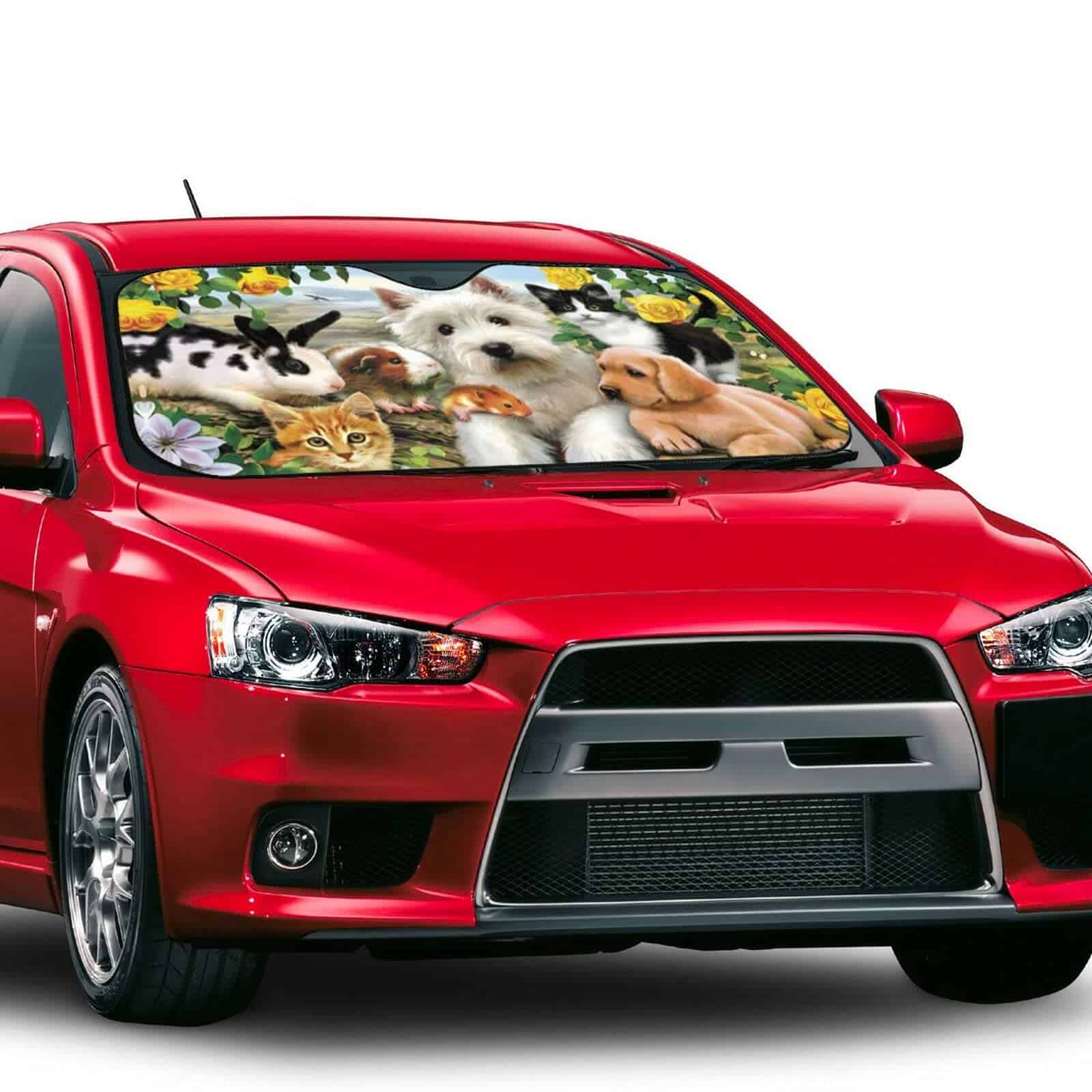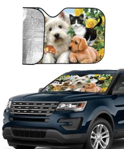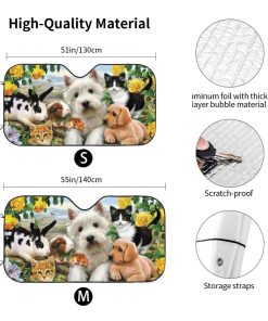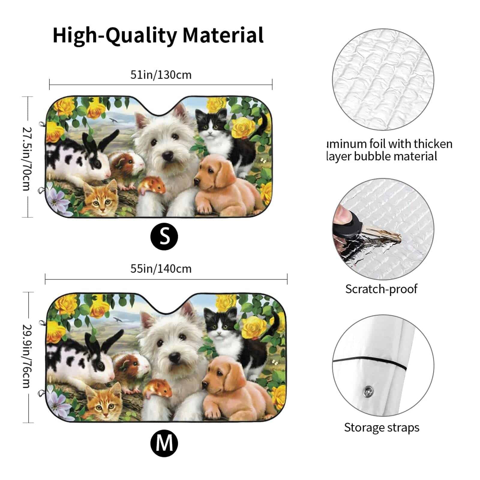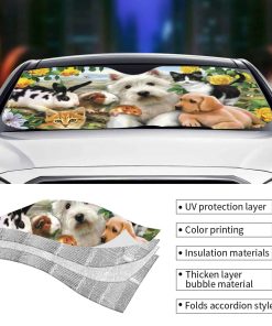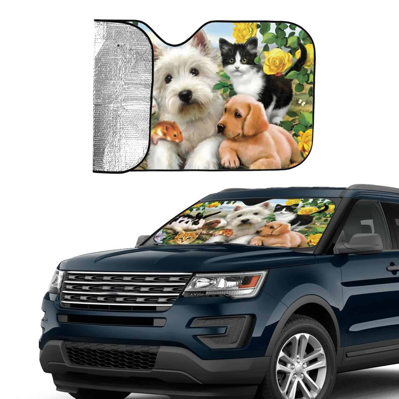 Protege tu vehículo del sol y el calor con este parasol de ventana delantera con un diseño de perros lindos. Con medidas de 51.2×27.5 pulgadas, este parasol es perfecto para coches, camiones y SUV. Bloquea los rayos UV dañinos, manteniendo tu vehículo fresco y protegido. Fácil de instalar y fácil de almacenar cuando no está en uso. ¡Añade un toque divertido y funcional a tu vehículo con este accesorio esencial de protección solar!