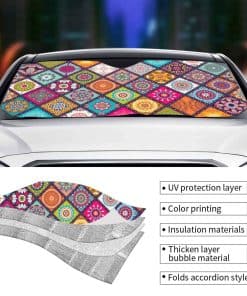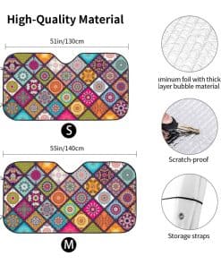 Mantén tu automóvil fresco y protegido de los dañinos rayos UV con este parasol delantero de parabrisas Mandala. Con un diseño único y funcional, este parasol es perfecto para autos, camiones y SUVs. Con medidas de 51.2×27.5 pulgadas, se adapta a la mayoría de los vehículos. ¡No te preocupes más por el calor intenso dentro de tu coche, disfruta de un viaje más fresco y cómodo con este parasol de alta calidad!