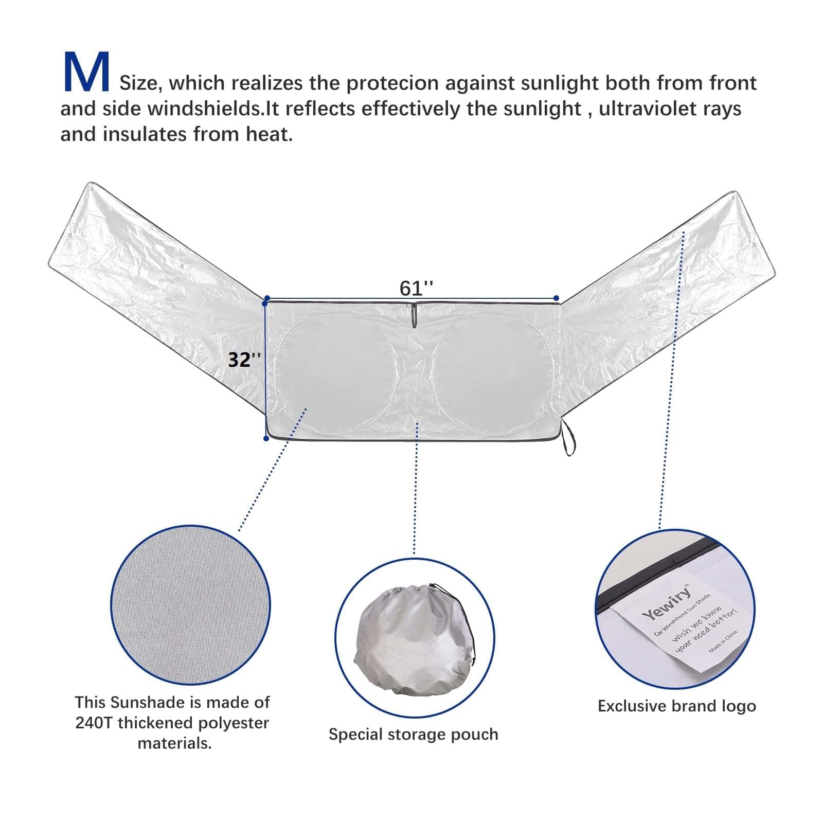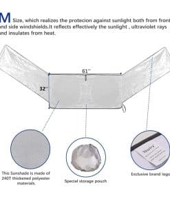 2. 99% de sombreado Hecho de tela de poliéster plateada de alta calidad, puede aislar el 99% de la luz dura, y la capa plateada puede reflejar eficazmente los rayos ultravioleta y el calor, para que el automóvil pueda mantenerse cómodo y fresco.