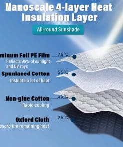 2. Actualización de 2023: Nuestro parasol para ventana lateral está hecho de aluminio PEVA y se rocía con una capa adicional de recubrimiento de nano spray a base de agua que es duradero, respetuoso con el medio ambiente, seguro, que no se desvanece y más resistente al calor que otros productos.