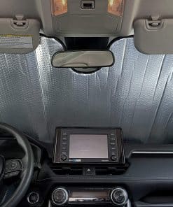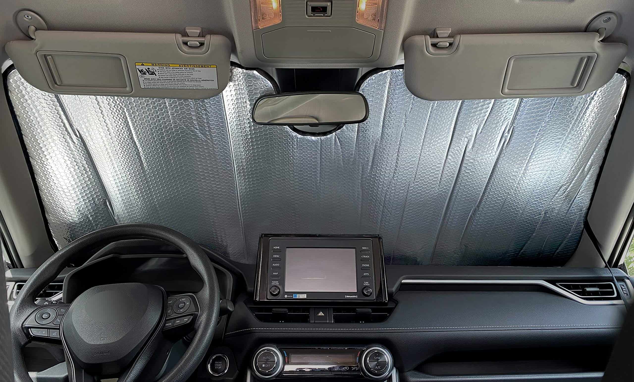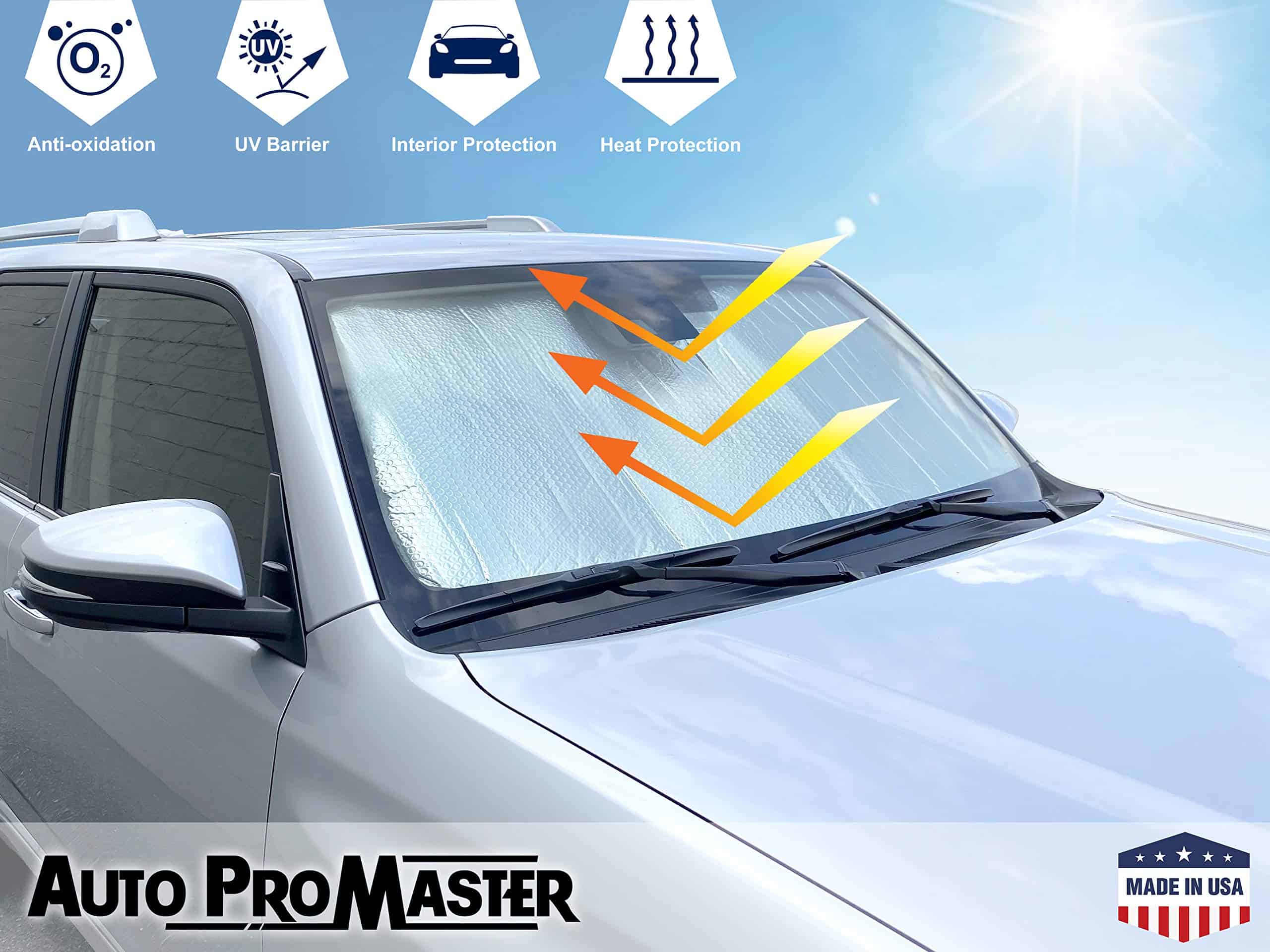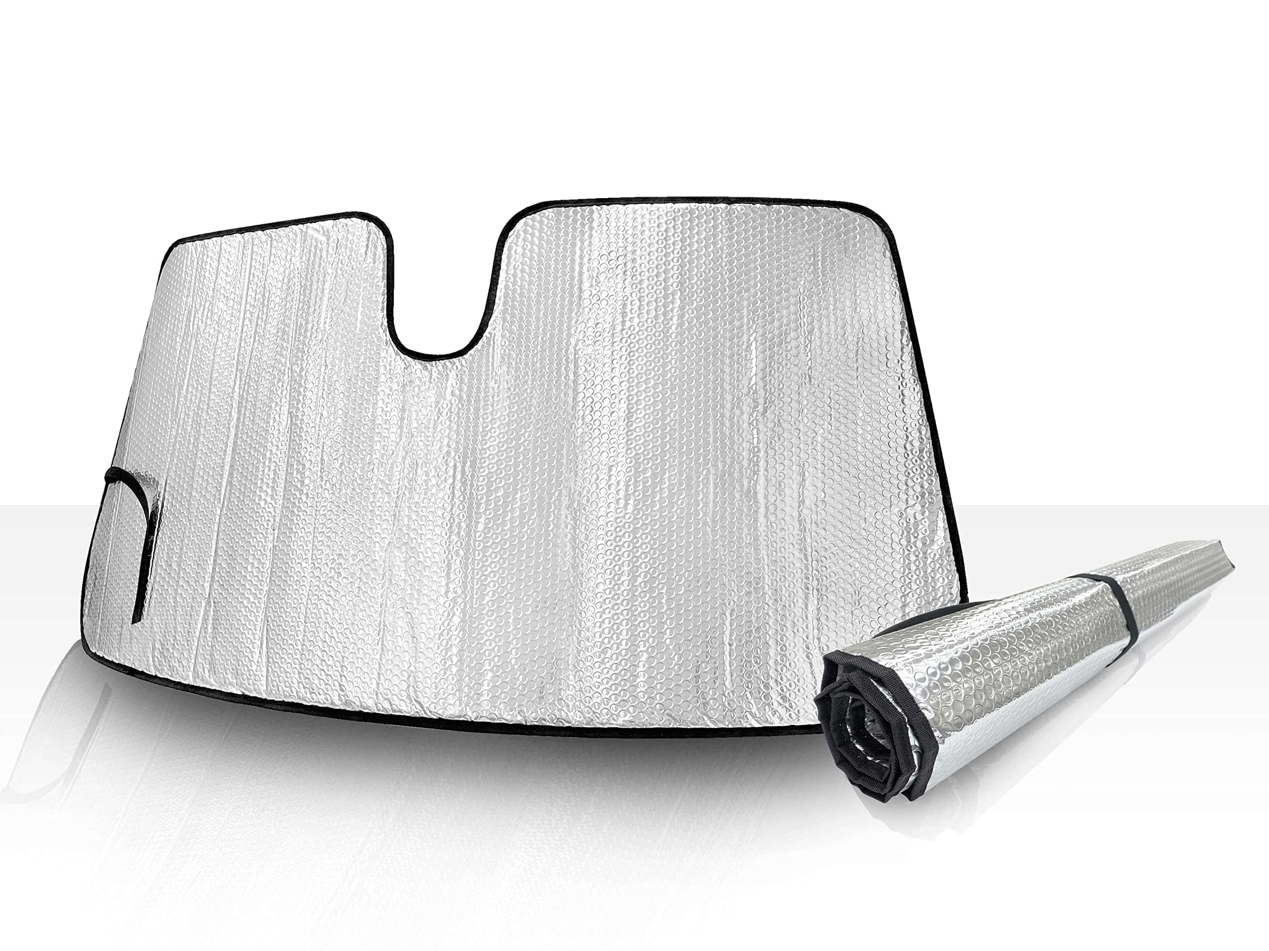 Parasol de alta calidad y duradero adaptado a medida para mantener los asientos de su vehículo frescos sin quemarse las manos en el volante. El material aislante de doble burbuja de lámina es un aislante térmico mucho mejor en comparación con otros productos en el mercado. Fácil de instalar y almacenar.