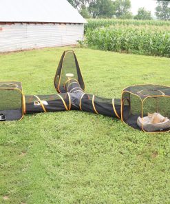Diviértete bajo el sol y permite que tus mascotas disfruten del aire libre con el Parque de Juegos para Gatos al Aire Libre MiMu para Gatos de Interior y Pequeños Perros. El recinto cubierto para mascotas proporciona un amplio espacio para jugar y relajarse, mientras que el túnel para gatos con cremallera permite espacio para correr y gatear. El parque de juegos portátil para animales viene con 3 carpas de diferentes tamaños y un túnel acoplable para permitir que perros, gatos, cobayas, conejos, hurones y más se muevan libremente entre los parques de juegos. Llévalo al camping o a la playa, instálalo en tu patio trasero o utilízalo en tu sala de estar para permitir que tus mascotas tengan un lugar propio y se diviertan de forma segura. Las puertas laterales facilitan el acceso para alcanzar y agarrar a tu mascota. Dobla y guarda la tienda de cama para mascotas en la bolsa de viaje cuando no esté en uso. No dejes a las mascotas desatendidas cuando uses el parque de juegos para mascotas. Advertencia: Este producto puede exponerte a sustancias químicas que se sabe que causan cáncer y defectos de nacimiento u otros daños reproductivos, según el Estado de California.