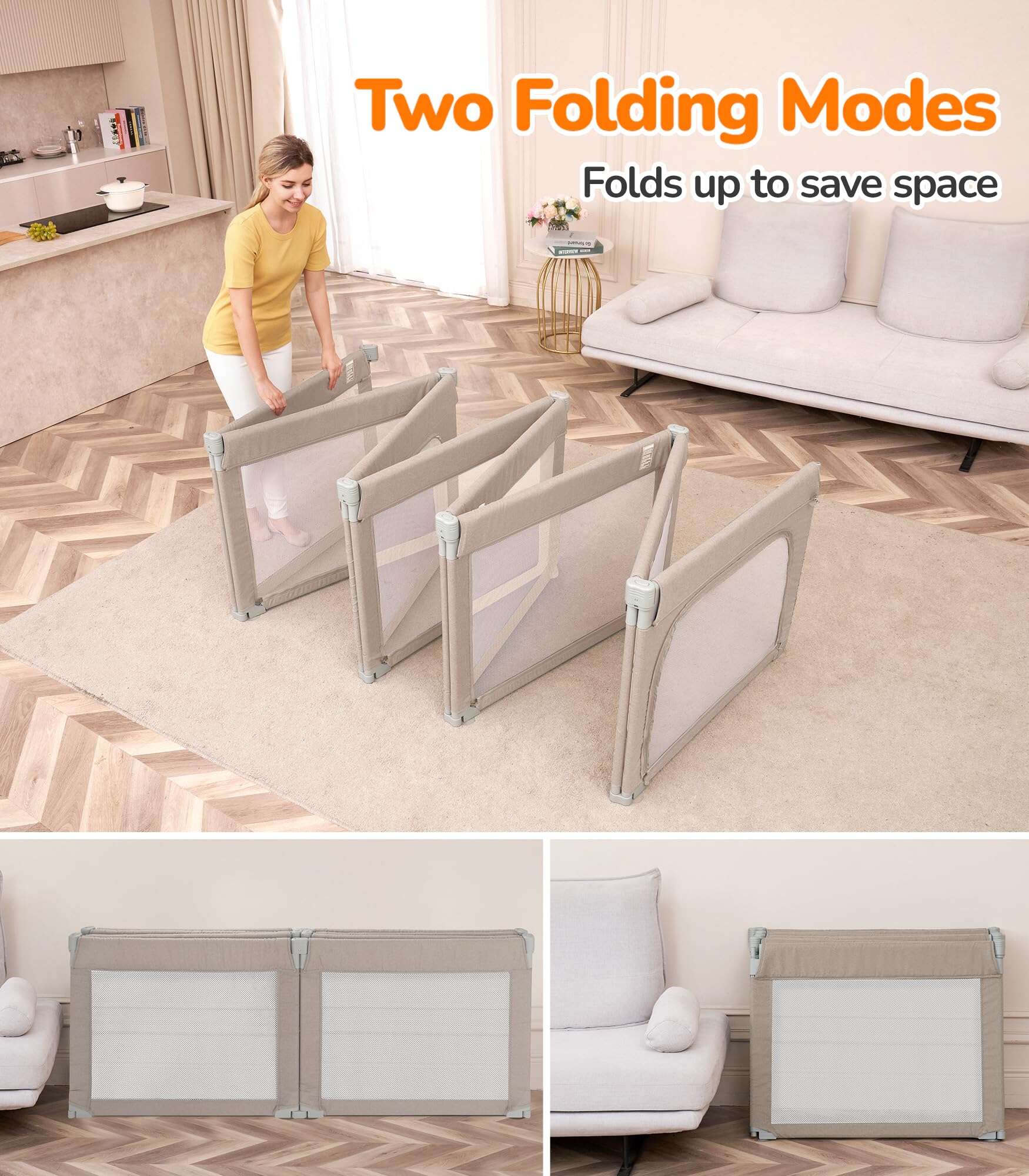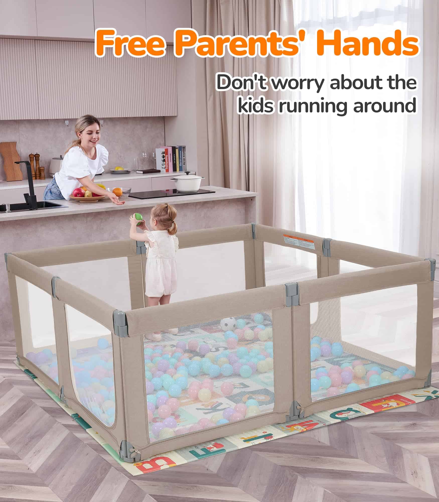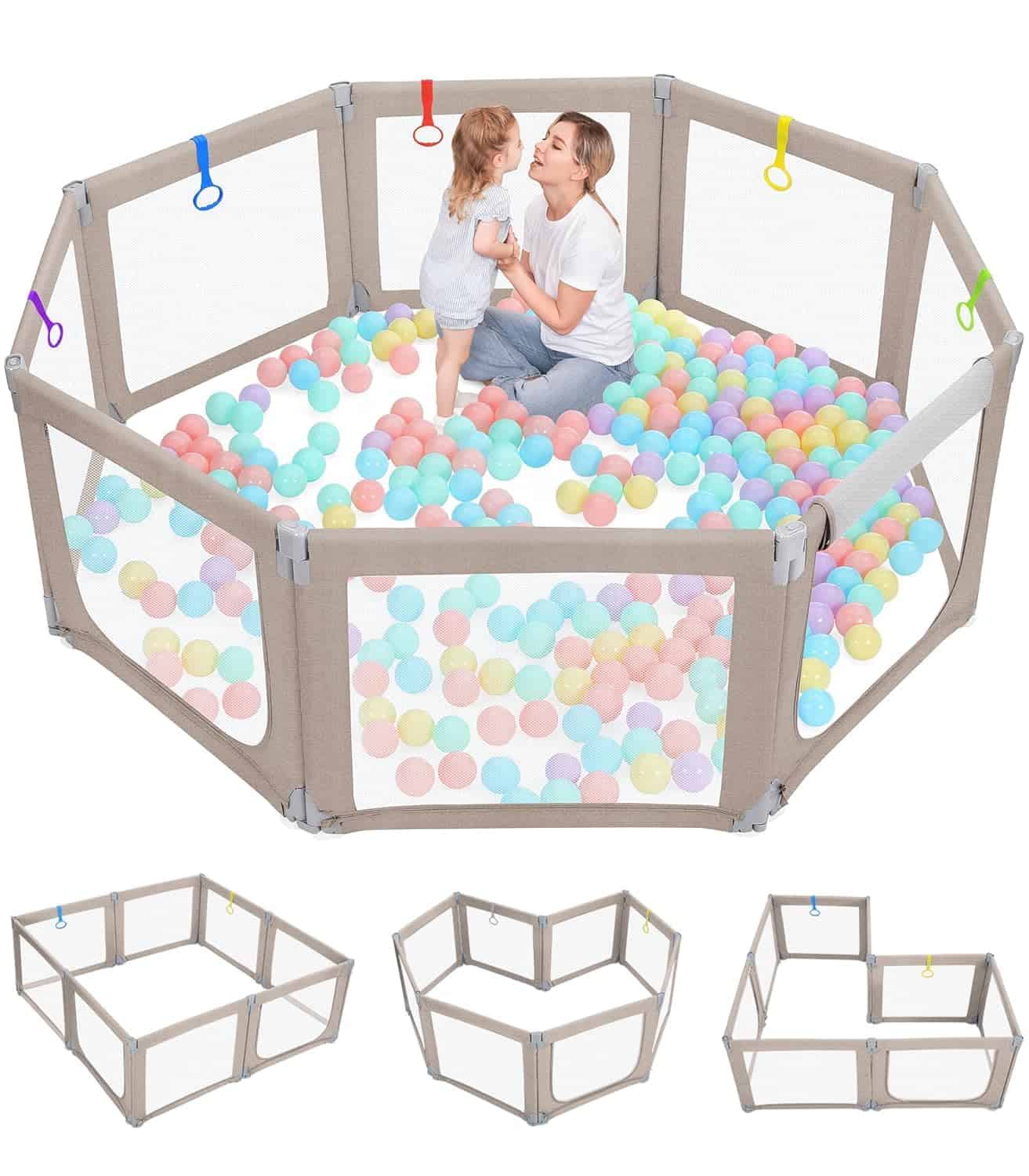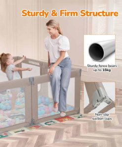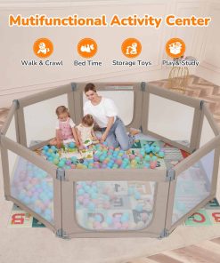 Color: Khaki. El Parque Infantil Plegable Dripex es el regalo perfecto tanto para el bebé como para sus padres y cuidadores. Con 8 paneles que se pueden transformar en diferentes formas, el tamaño se puede ajustar para adaptarse a cualquier espacio. La puerta con cremallera colgante evita accidentes y protege a los niños de posibles lesiones. Con un amplio espacio de juego de 34 pies cuadrados, permite que varios niños jueguen juntos, incluidos los padres. El material certificado garantiza la seguridad de los bebés, con paneles equipados con ventosas para mayor estabilidad. El diseño portátil permite un uso tanto en interiores como en exteriores, ideal para salidas familiares y reuniones con amigos. La malla transparente proporciona una vista completa de 360 grados, permitiendo a los padres mantenerse atentos a sus hijos en todo momento. Disfruta de la comodidad de realizar tareas domésticas mientras tu bebé juega en un espacio seguro y divertido.