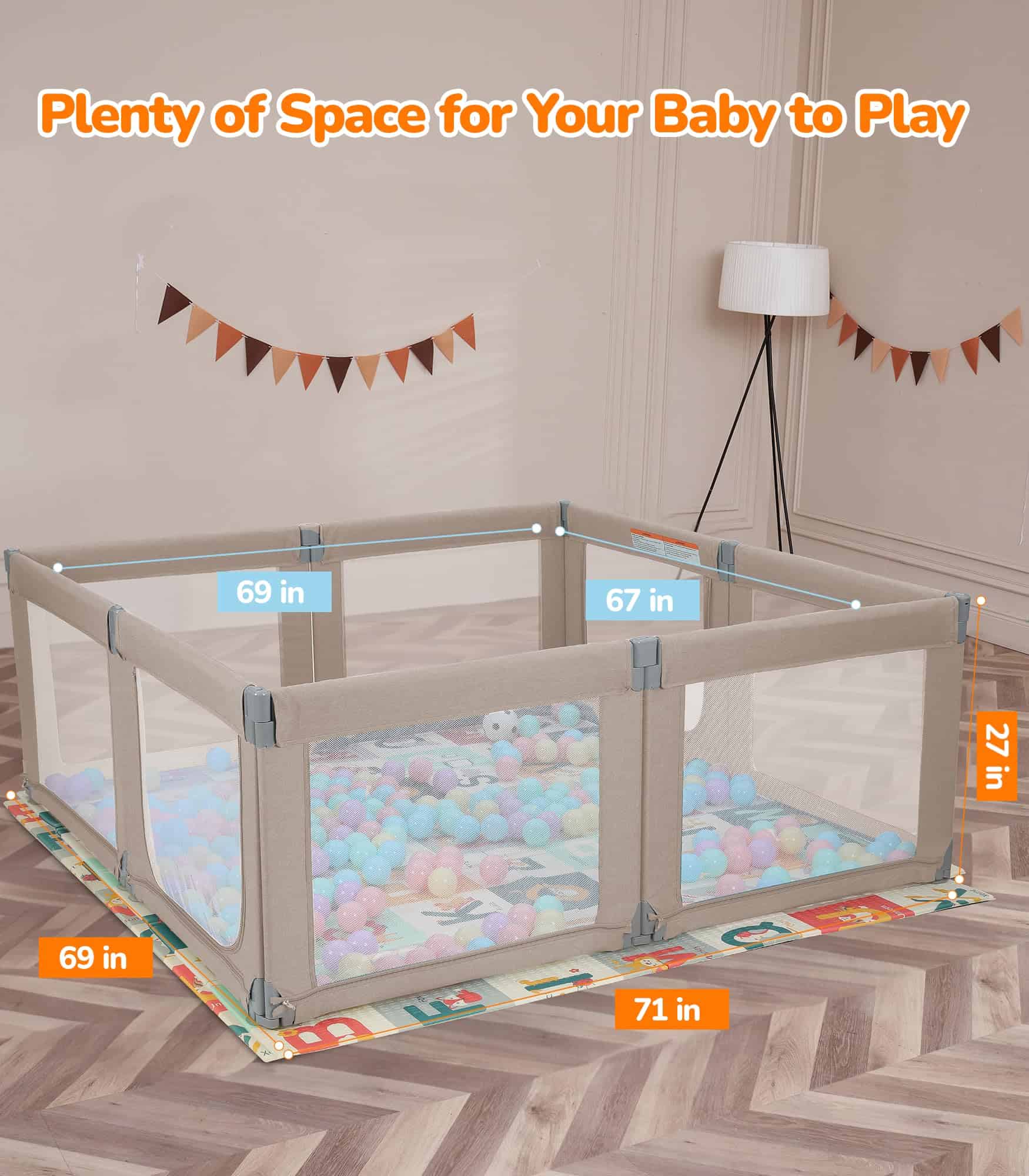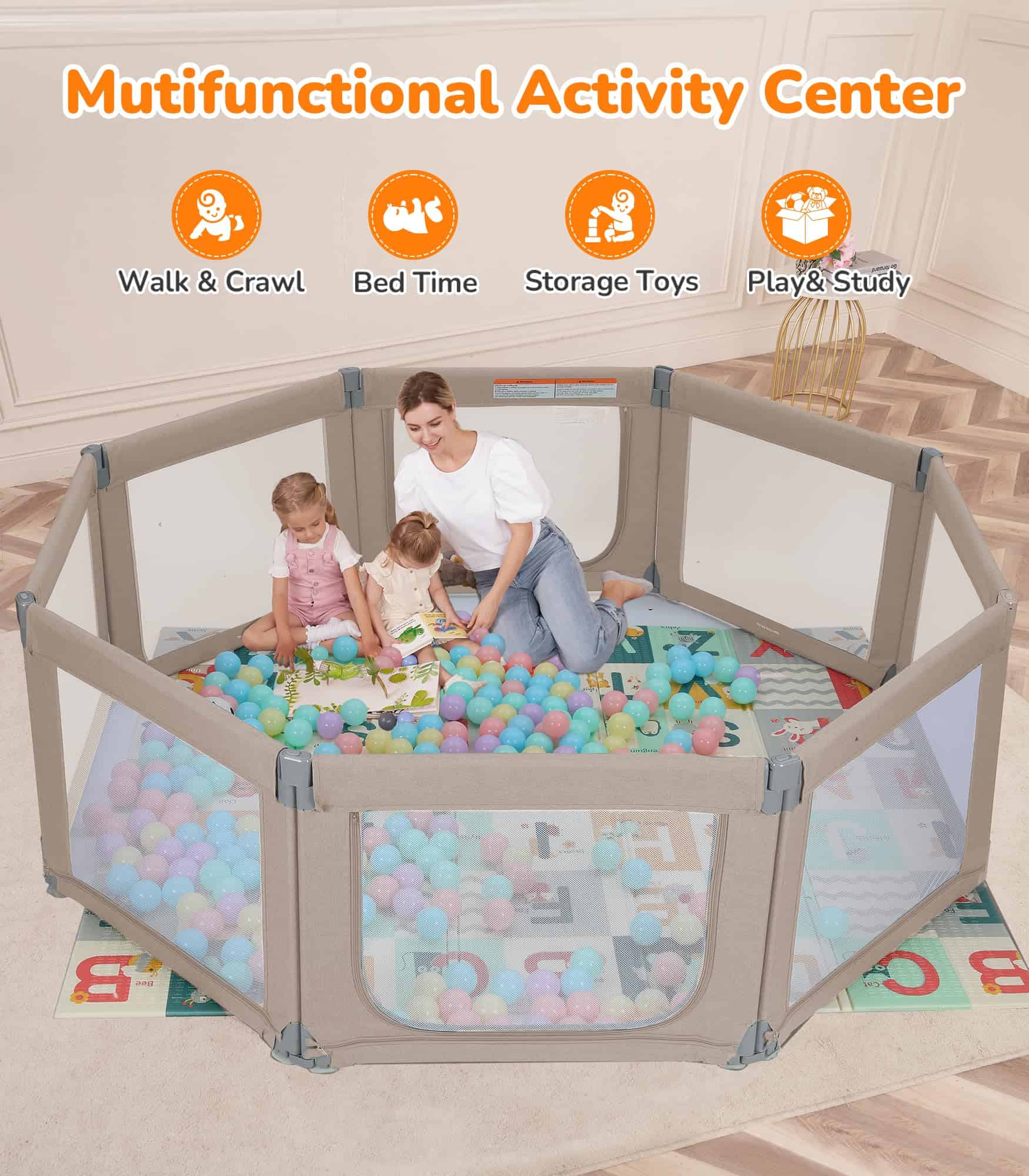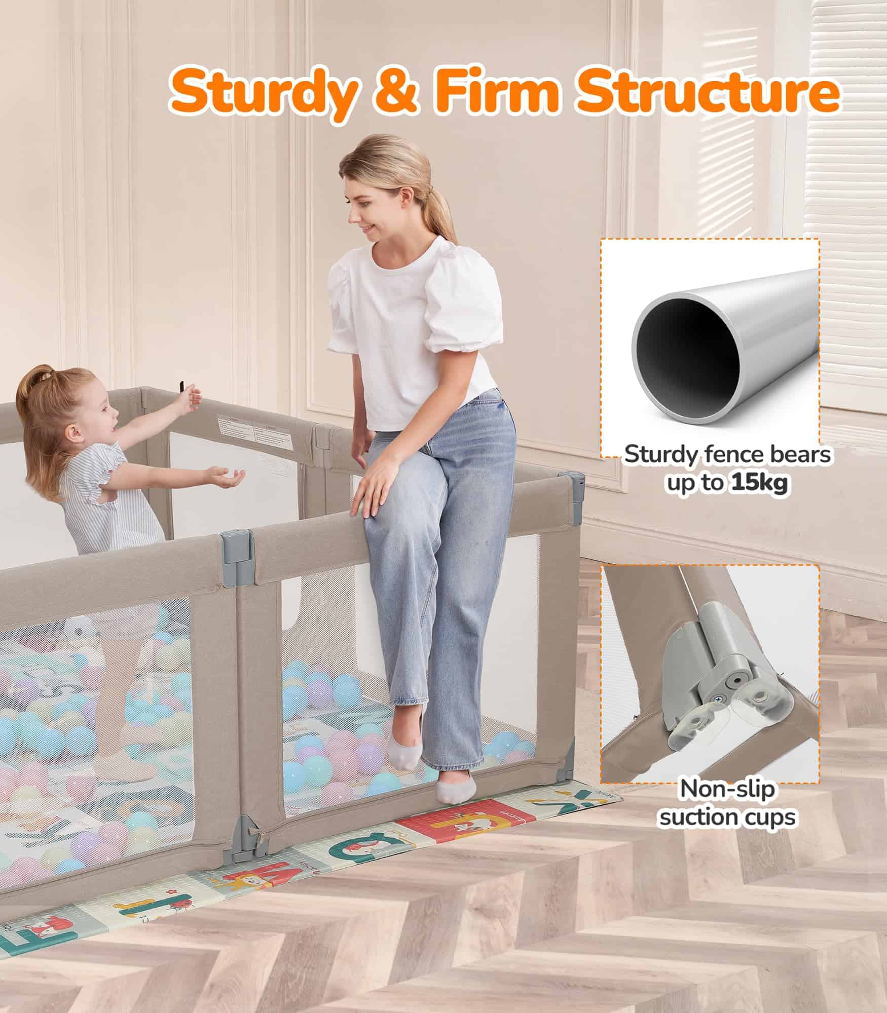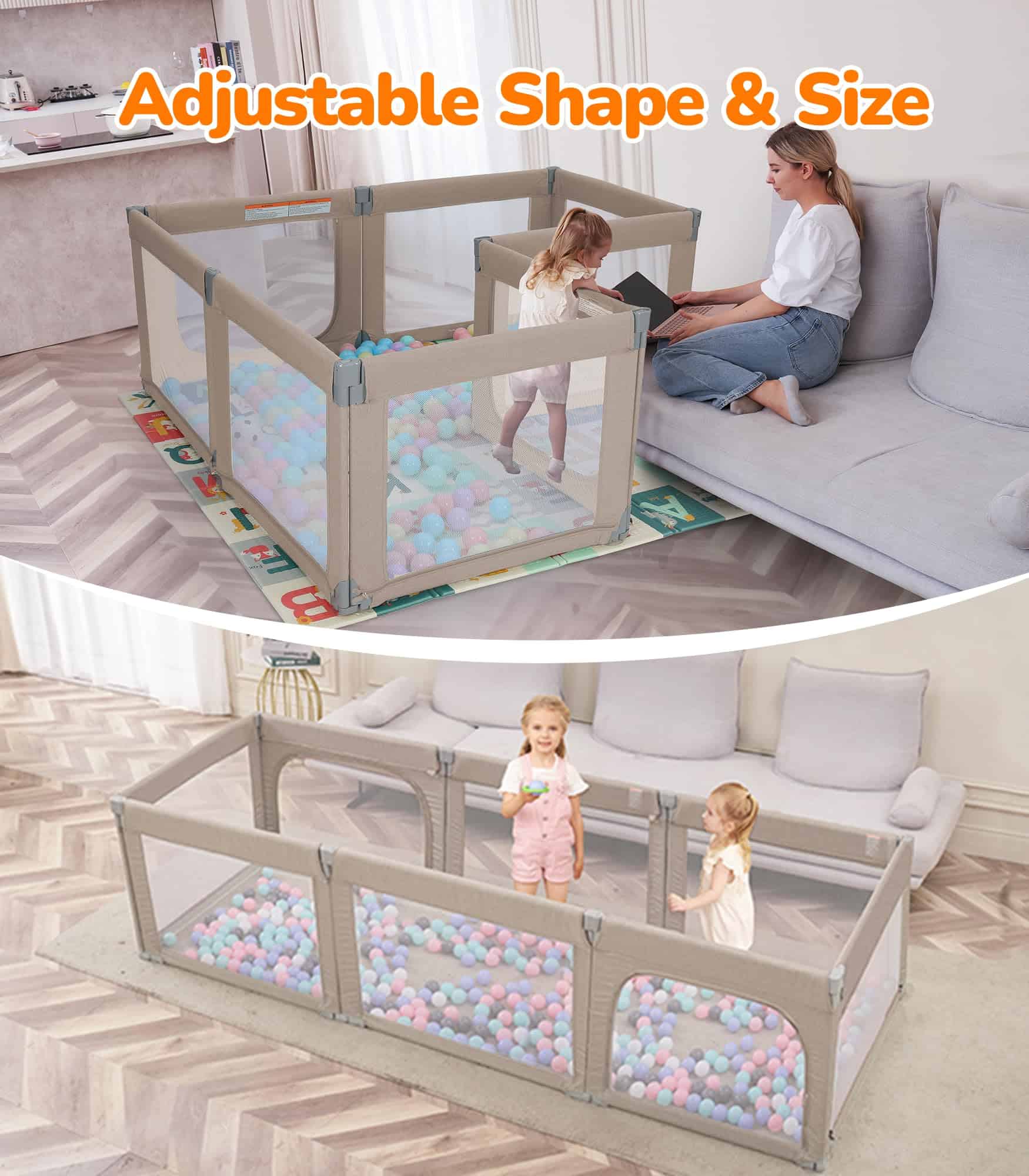 Color: Khaki. El Parque Infantil Plegable Dripex es el regalo perfecto tanto para el bebé como para sus padres y cuidadores. Con 8 paneles que se pueden transformar en diferentes formas, el tamaño se puede ajustar para adaptarse a cualquier espacio. La puerta con cremallera colgante evita accidentes y protege a los niños de posibles lesiones. Con un amplio espacio de juego de 34 pies cuadrados, permite que varios niños jueguen juntos, incluidos los padres. El material certificado garantiza la seguridad de los bebés, con paneles equipados con ventosas para mayor estabilidad. El diseño portátil permite un uso tanto en interiores como en exteriores, ideal para salidas familiares y reuniones con amigos. La malla transparente proporciona una vista completa de 360 grados, permitiendo a los padres mantenerse atentos a sus hijos en todo momento. Disfruta de la comodidad de realizar tareas domésticas mientras tu bebé juega en un espacio seguro y divertido.
