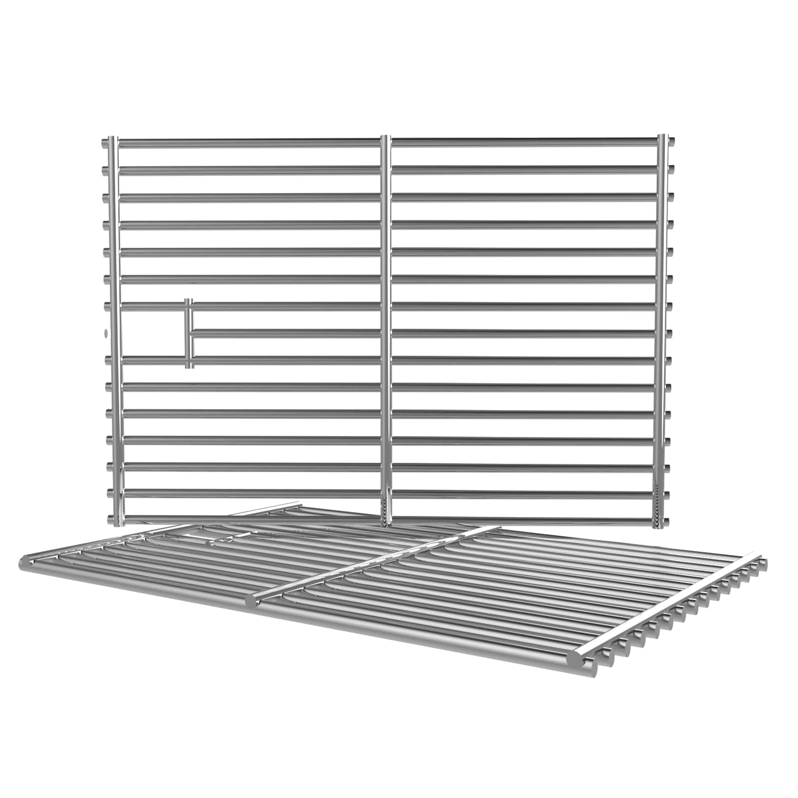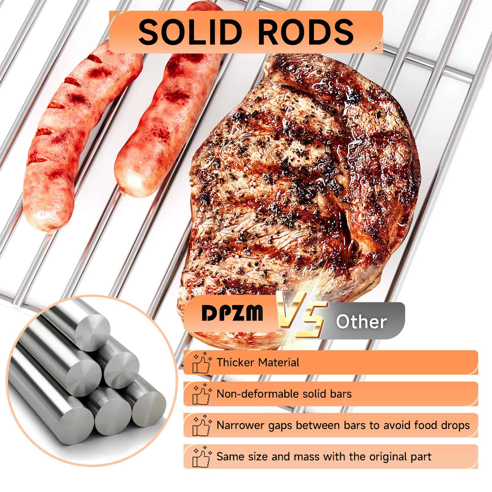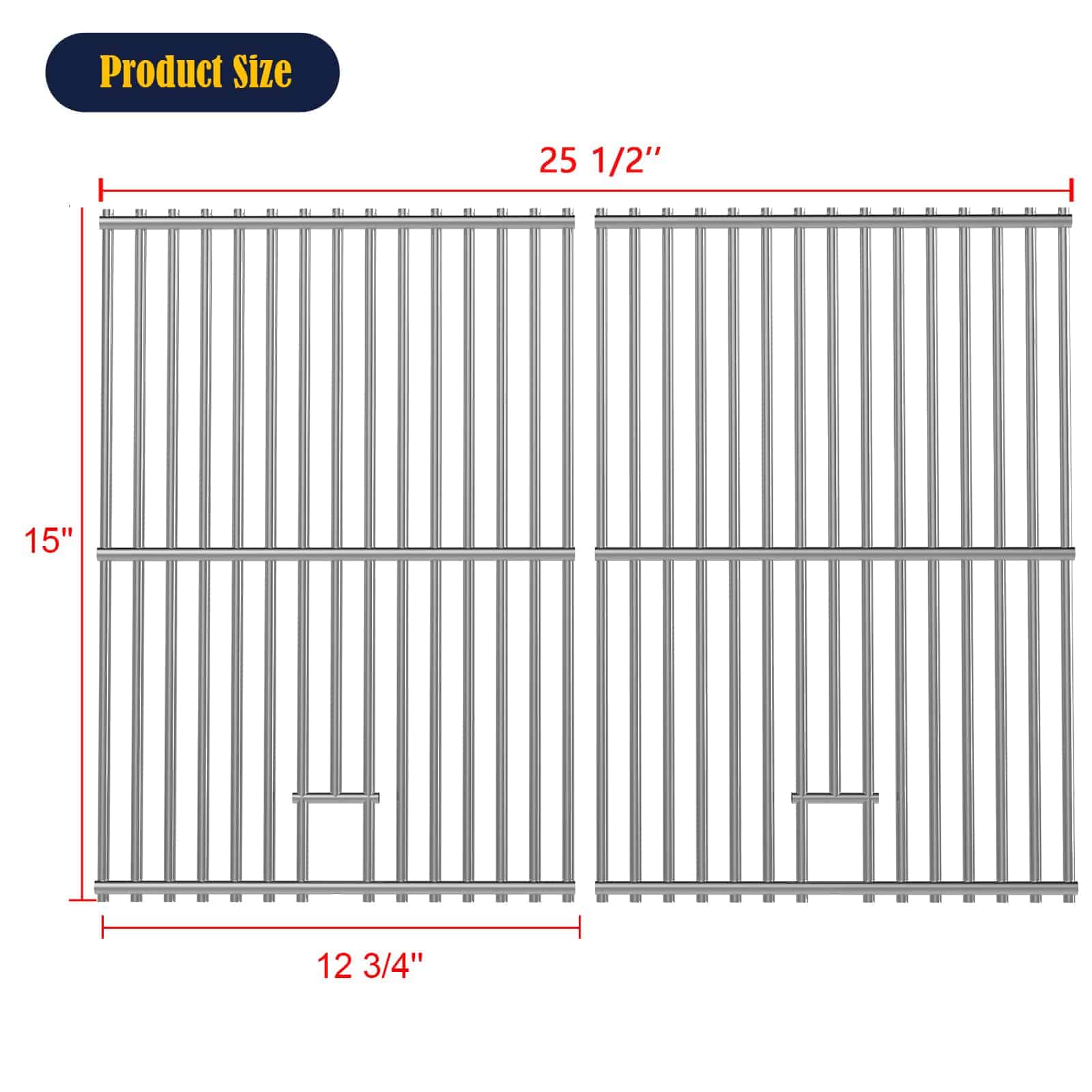 La parrilla de acero inoxidable DPZM de 15» es perfectamente compatible con varios modelos de Broil King, Broil-Mate, Sterling, Huntington y Silver Chef. Cada rejilla de cocción mide 15″ x 12 3/4″, con un total de 15″ x 25 1/2″. Se incluyen 2 rejillas de cocción de acero inoxidable y 1 limpiador de parrilla en el paquete. Recomendamos encarecidamente que mida el tamaño de las piezas originales antes de realizar la compra.