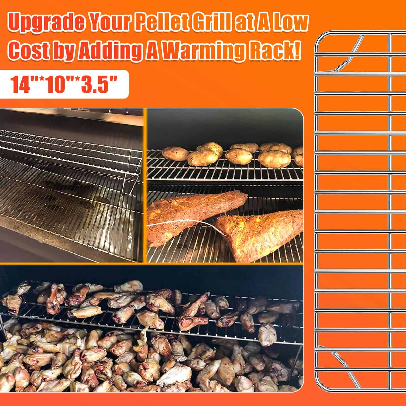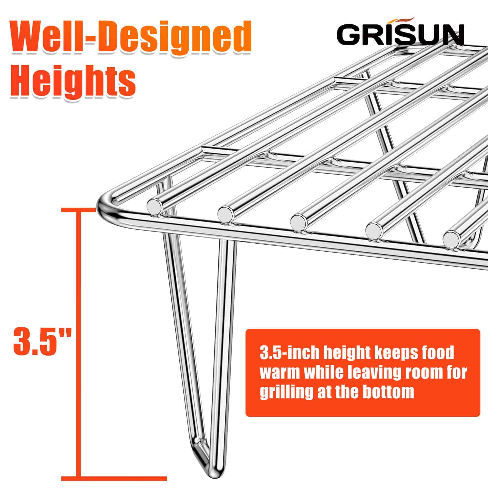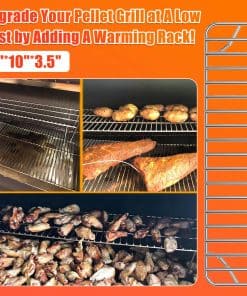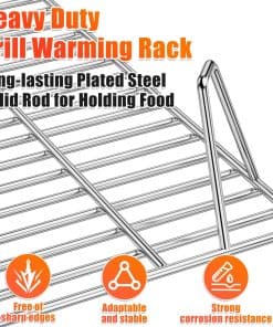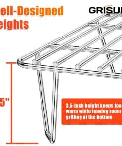 5. Altura Perfecta – Esta parrilla de calentamiento está lo suficientemente baja en la parrilla para mantener la comida caliente y lo suficientemente alta para permitir que la comida siga cocinándose en la plancha debajo de ella.