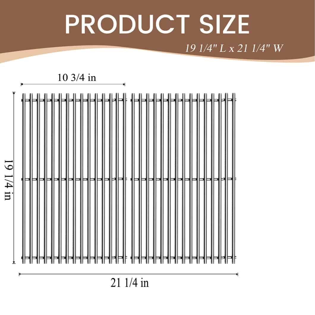 1. Incluye 2 parrillas de acero inoxidable, Dimensiones de la Parrilla de Cocina: 19 1/4″ x 10 3/4″ para la pieza individual; total 19 1/4″ x 21 1/4″.