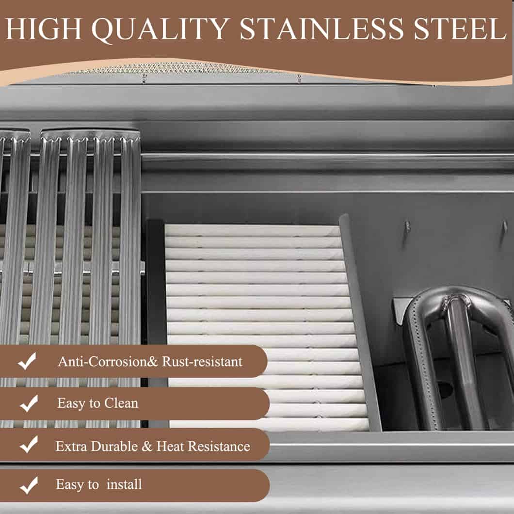Fits para modelos de parrilla de gas DCS: 27DBQ, 27DBQR, 27DBR, 27DSBQ, 27DSBQR, 27FSBQ, 27FSBQR, 36DBQ, 36DBQAR, 36DBQR. Encaja para modelos de parrilla de gas DCS: 36EBQAR, 48DBQ, 48DBQAR, 48DBQR, 48EBQAR, 48EBQR, BGA27-BQ, BGA27-BQR, BGA36-BQARL, BGA36-BQARN. Encaja para modelos de parrilla de gas DCS: BGA48-BQARL, BGA48-BQARN, BGA48-BQRL, BGA48-BQRN, BGB36-BQARL, BGB36-BQARN, BGB48-BQARL, BGB48-BQARN, BGB48-BQRL, BGB48-BQRN. NOTA: Por favor, verifique el tamaño y la forma de sus piezas originales y compárelos con los nuestros ANTES de hacer el pedido. Cualquier pregunta, no dude en contactarnos.