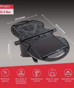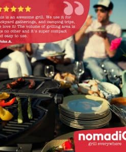 La parrilla de gas portátil nomadiQ es el compañero ideal para tus aventuras al aire libre. Con un peso ligero de 12 libras, esta parrilla de gas es perfecta para acampar, eventos deportivos, viajes en RV, botes y más. Su diseño compacto se pliega para un fácil almacenamiento y transporte, lo que la convierte en la solución perfecta para la parrilla portátil. Con control de temperatura dual, puedes cocinar con precisión en dos superficies de cocción independientes. La configuración es rápida y sencilla, permitiéndote disfrutar de la parrilla en cuestión de segundos. ¡Lleva la parrilla de gas portátil nomadiQ a todas tus aventuras al aire libre y disfruta de deliciosas comidas dondequiera que vayas!