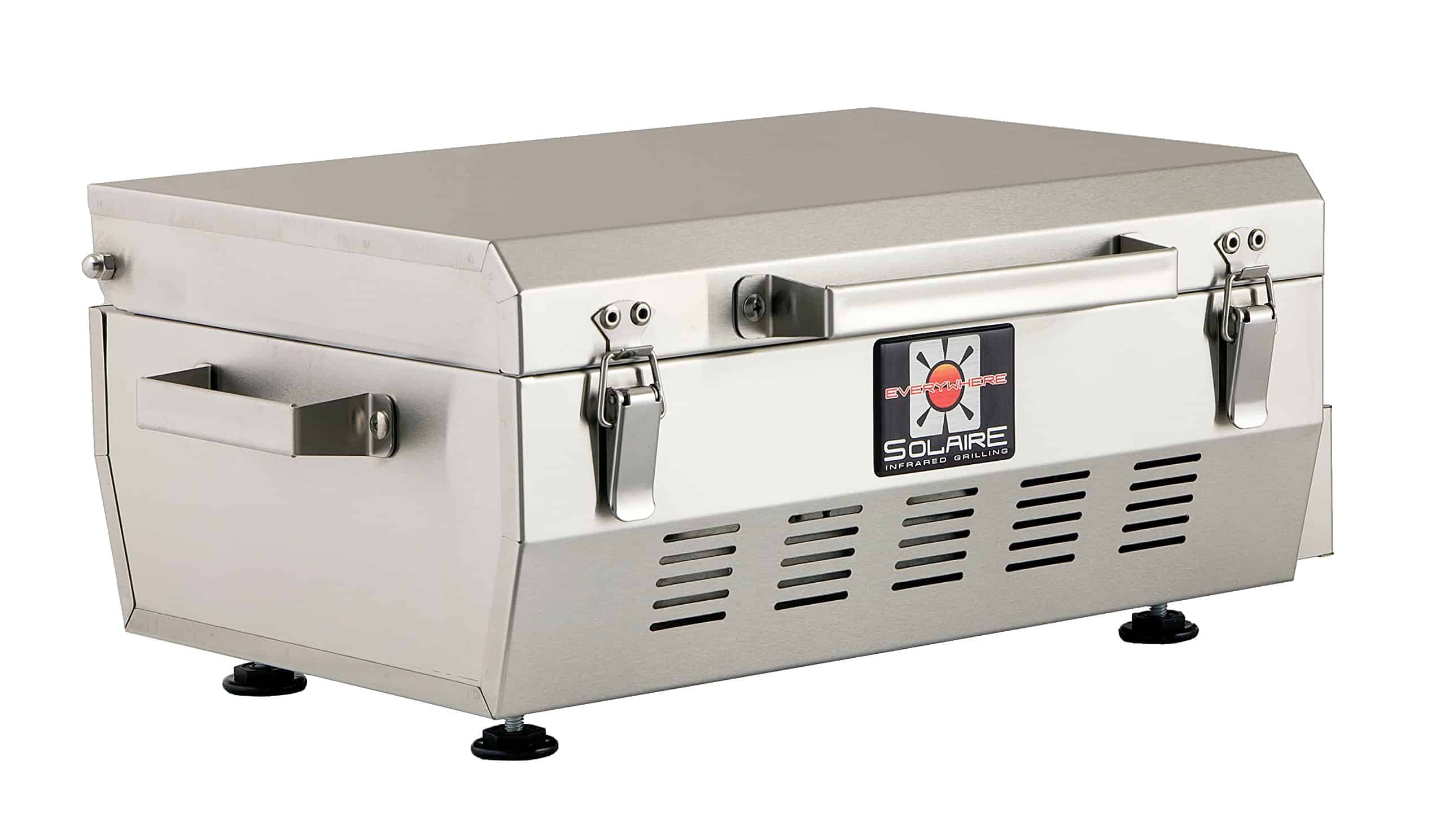 La parrilla Solaire Everywhere es perfecta para quienes van de tailgating, picnics, RV, camping, navegación, balcones y patios traseros: en todas partes donde desees sabrosa comida a la parrilla. Esta parrilla portátil hecha para usar cuenta con el quemador infrarrojo Solaire, que se calienta en solo tres minutos a temperaturas abrasadoras que sellan los jugos. También cuenta con la rejilla en V de Solaire, que mejora el sabor y prácticamente elimina las llamaradas. El único ensamblaje es adjuntar las manijas (6 pernos) y los cuatro ajustables’, de lo contrario, esta parrilla totalmente soldada de acero inoxidable tipo 304 está lista para usar directamente de la caja. Funciona directamente con botellas de propano de 1 libra (no incluidas), y puede usarse con tanques de propano de barbacoa más grandes con el accesorio de manguera adaptadora (artículo sol-sahose6), con gas natural con el kit de conversión a gas natural (artículo sol-sangc), o con un sistema de propano de baja presión instalado (como en un RV) con el kit de conversión a propano de baja presión (sol-salpc). La campana, que protege al quemador durante el transporte y almacenamiento, tiene pestillos de resorte. La Solaire Everywhere es una máquina de parrilla que le brinda el gran sabor de un fuego de carbón intenso con el control, la conveniencia y la consistencia del gas. Conviértete en el indiscutido hechicero del campamento, la envidia de tu estacionamiento y el héroe de tu familia cuando les sirvas comida más jugosa y sabrosa de lo que jamás hayan probado en una parrilla ordinaria.