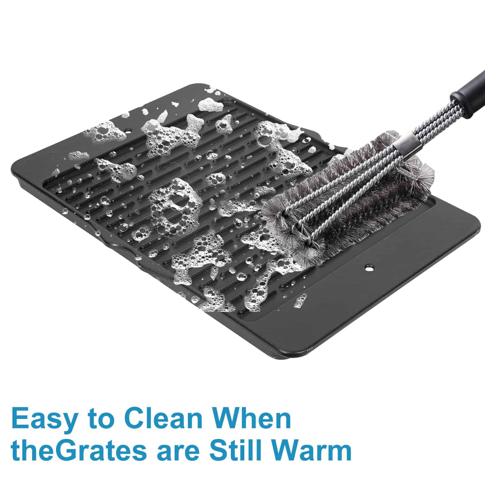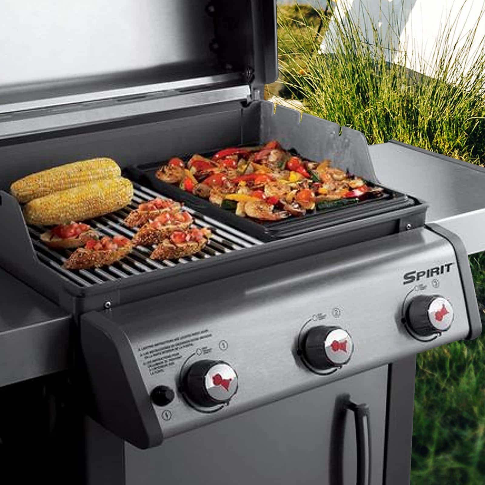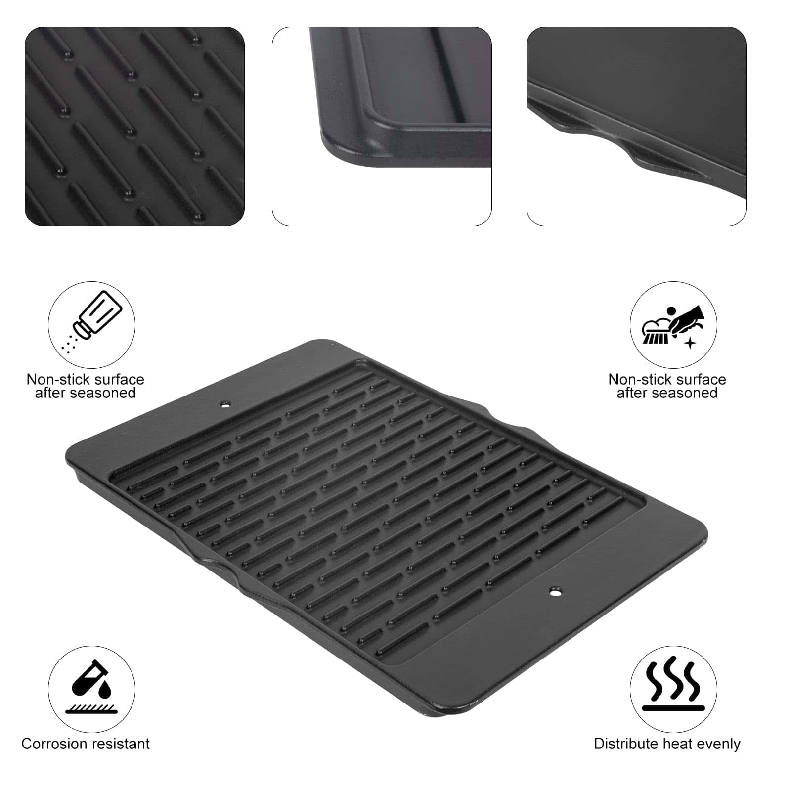 Parrilla de hierro fundido duradero recubierta de esmalte para evitar la oxidación y durar más. Una parrilla de hierro fundido de doble cara te permite hacer panqueques, huevos y tocino en el lado liso, y pescado delicado y verduras en el lado texturizado. Ambos lados distribuyen el calor de manera más uniforme, se calientan más rápido y retienen el calor por más tiempo. Paquete incluye 1 parrilla de hierro fundido esmaltada mate de doble cara y 1 parrilla de parrilla. Dimensiones: 17.5 x 12 x 0.62 pulgadas cada una. Compatible con las parrillas Weber Spirit 300 y Spirit II 300 Series, así como con los modelos Weber Genesis Silver, Gold, Platinum, Broil King y Broil-Mate. Perfecto como repuesto para varios modelos de parrillas Weber.