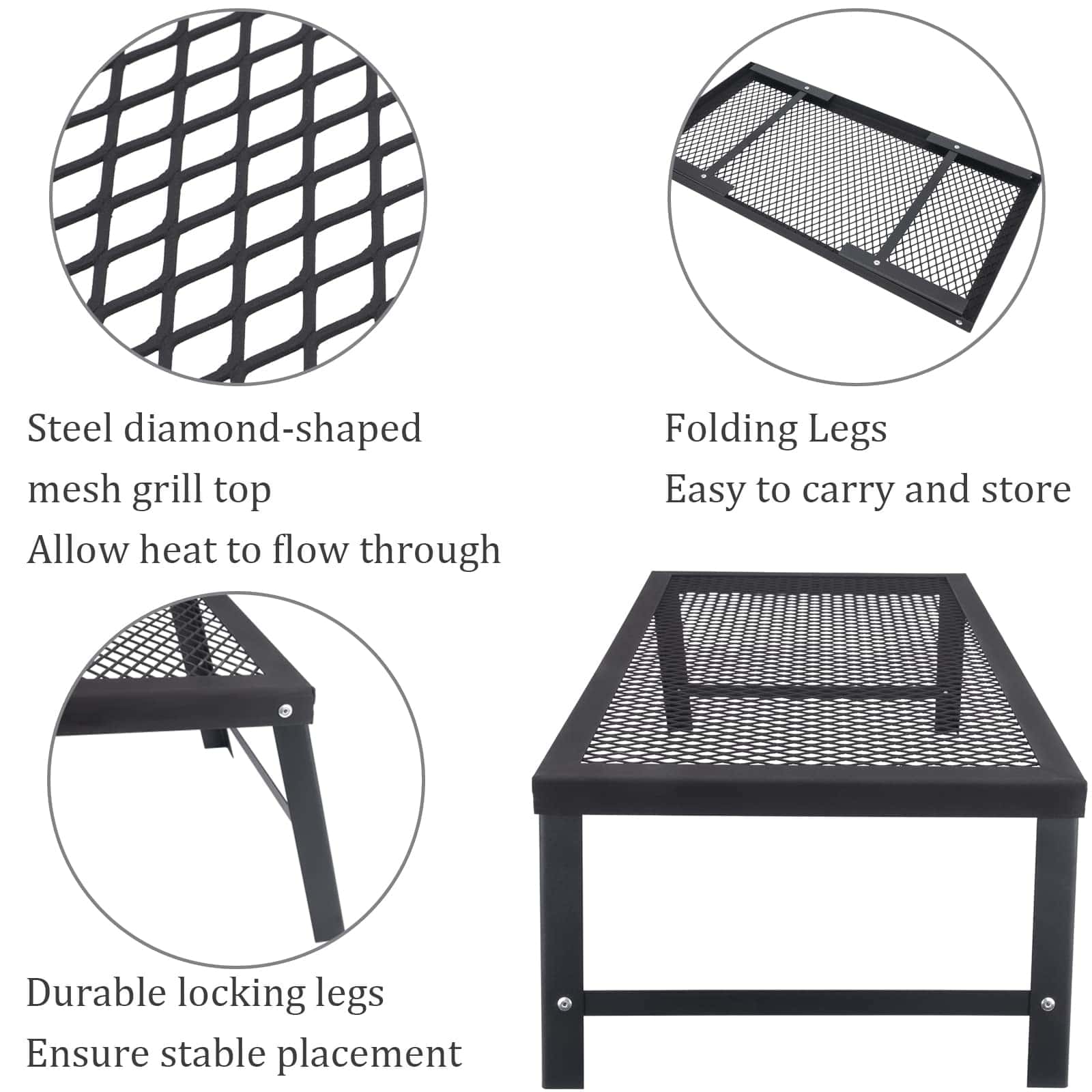 1. Práctica Parrilla de Fogata: Haciendo más fácil cocinar una comida caliente cuando estás al aire libre con esta parrilla portátil plegable. La parrilla de fogata para camping está diseñada para ser utilizada con utensilios de cocina al aire libre, sartenes, cacerolas y ollas para cocinar sobre una fogata abierta. No es adecuada para parrillas de contacto directo.