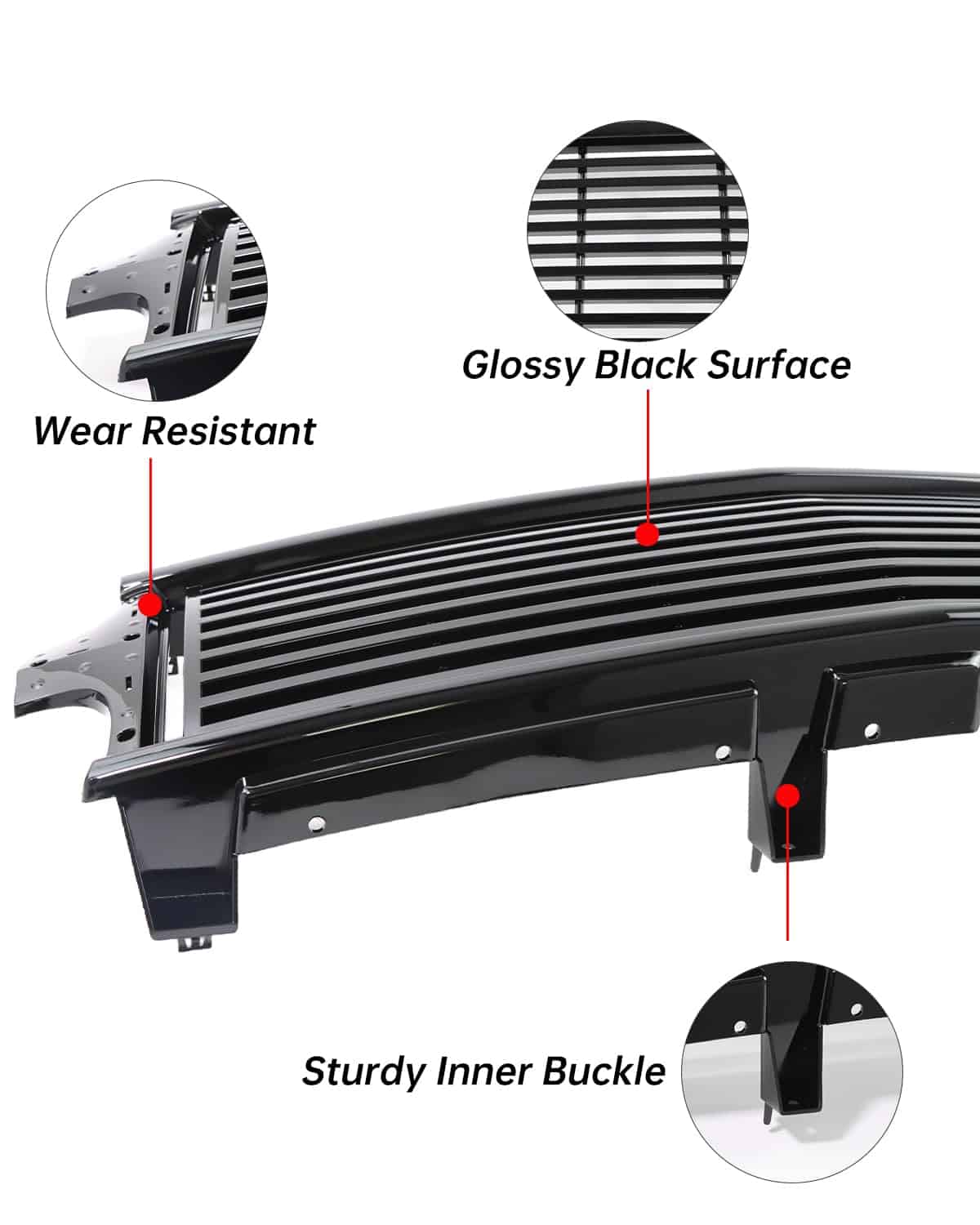 3. APARIENCIA PERFECTA: Esta parrilla delantera no solo mejora el estilo exterior de su vehículo, sino que también actúa como protector contra colisiones para proteger el extremo frontal de su vehículo. Proporciona un mejor flujo de aire al radiador para mejorar el proceso de enfriamiento.