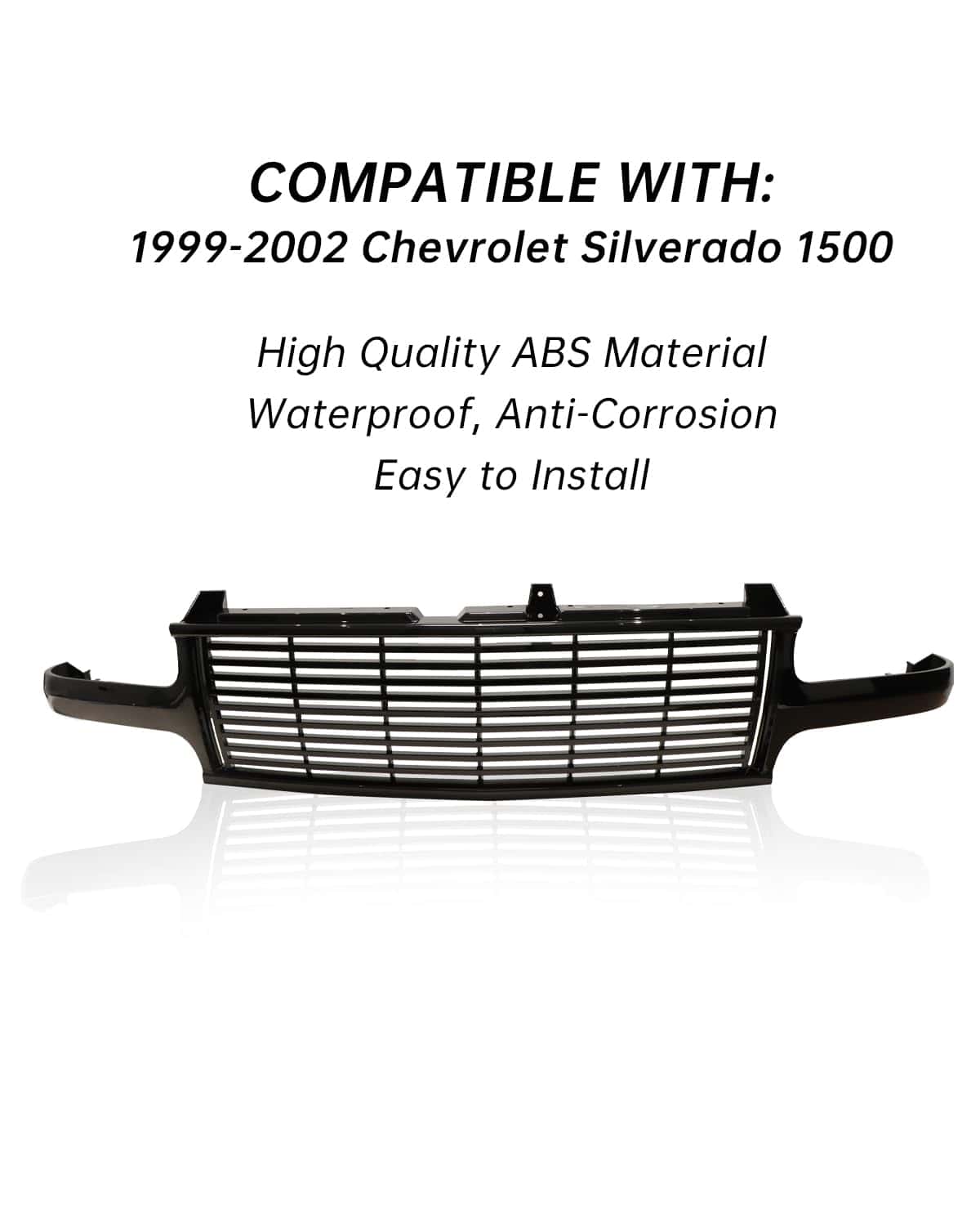 1. COMPATIBILIDAD FINAL: Parrilla delantera brillante diseñada específicamente para ser compatible con Chevy Chevrolet Silverado 1500 1999 2000 2001 2002. Por favor, asegúrese de que se ajuste a su vehículo antes de comprar.