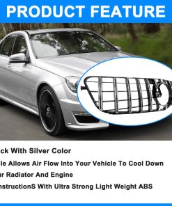 Adaptación: Parrilla delantera para Mercedes Benz Clase C W204 C300 C250 C350 2008-2014. Material: La parrilla W204 C300 está hecha de ABS, lo que la hace ligera y estable. La construcción duradera en general puede soportar el calor generado por el motor y la exposición al sol. Instalación: Instalación rápida y fácil. Sin cortes ni perforaciones. La parrilla c300 gt se puede reemplazar directamente. Función: La parrilla del parachoques W204 le da a su automóvil un aspecto de lujo único que se destaca entre otros. La parrilla protege el frente de su vehículo. El diseño de la parrilla c300 también es resistente a influencias externas. Incluido en el paquete: 1 parrilla delantera de estilo GT Benz W204.