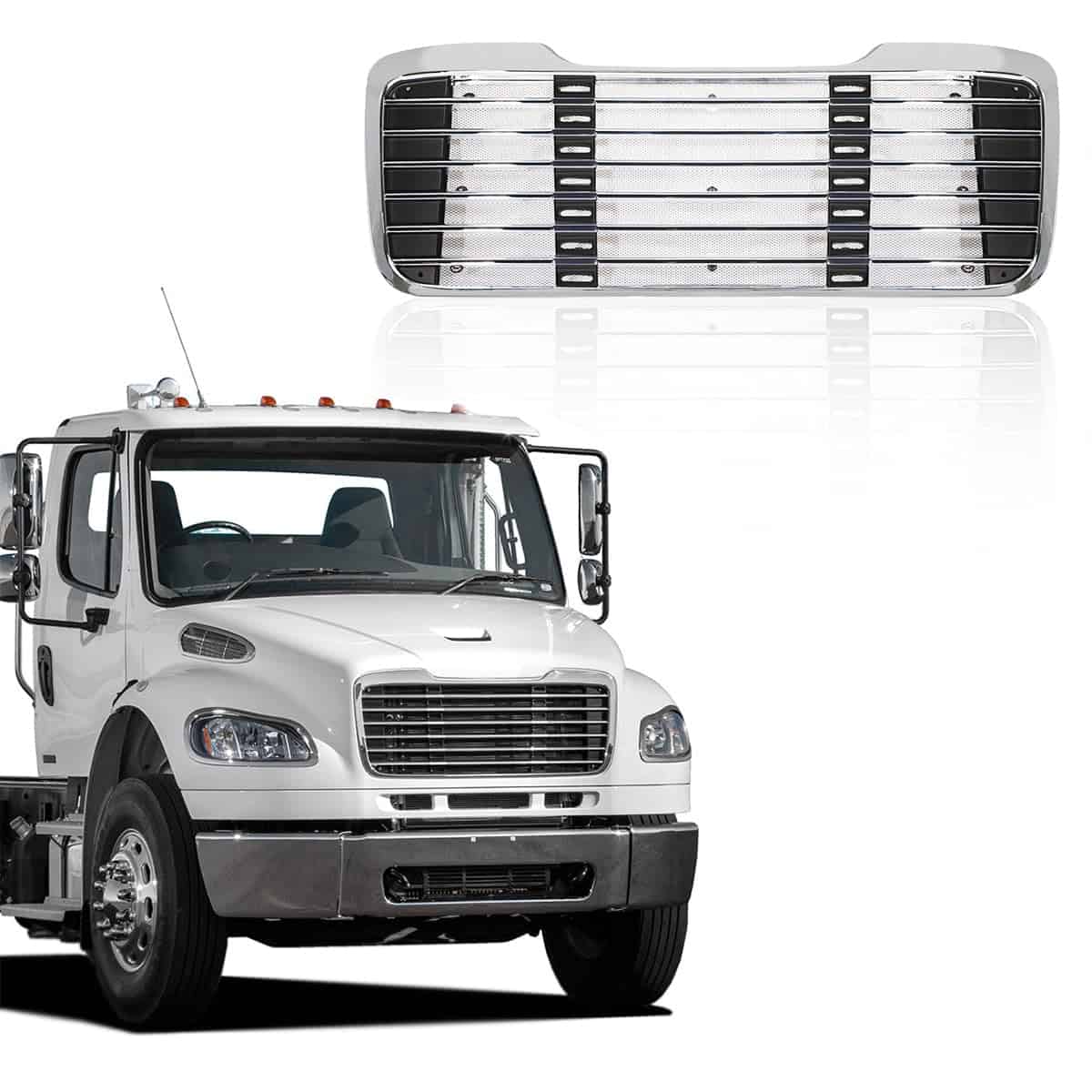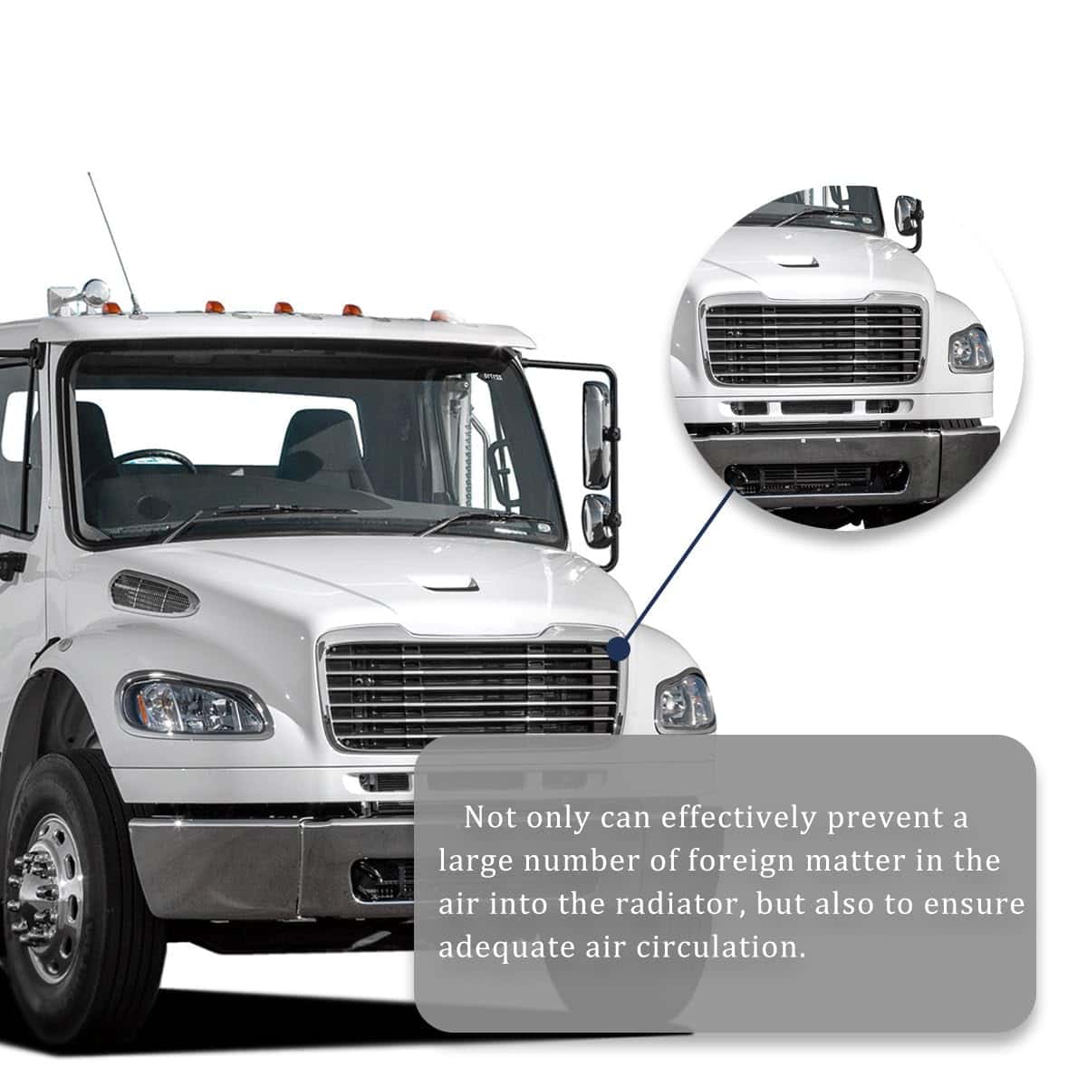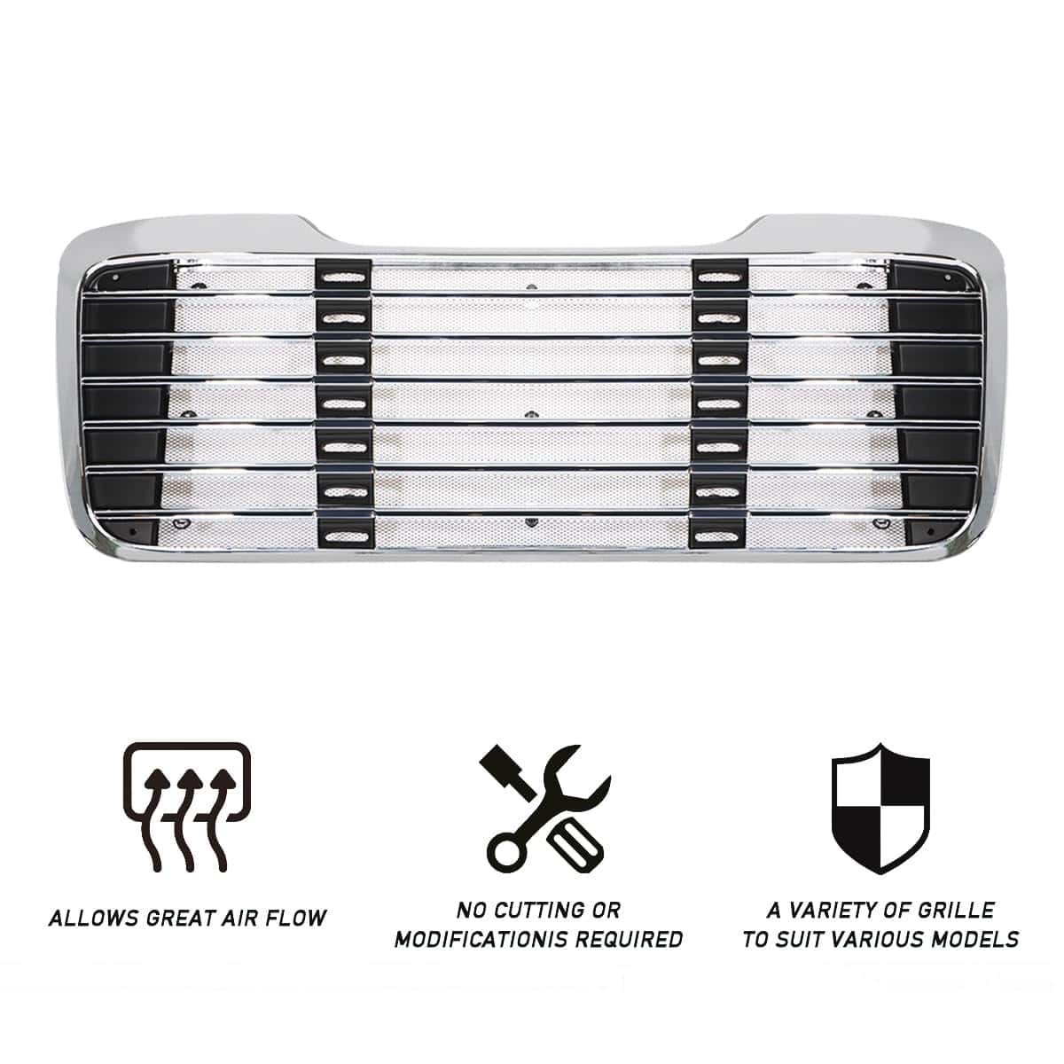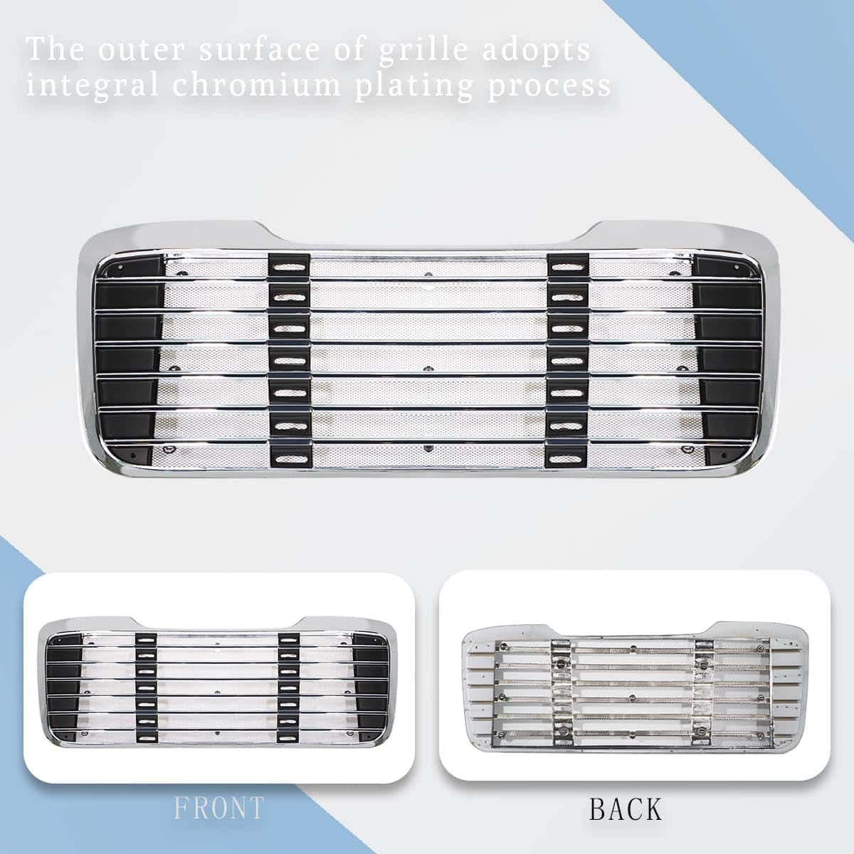 En resumen, esta parrilla delantera cromada del capó del radiador es una excelente adición para cualquier Freightliner M2 2004-2013, brindando un aspecto elegante y protección adicional al vehículo.
