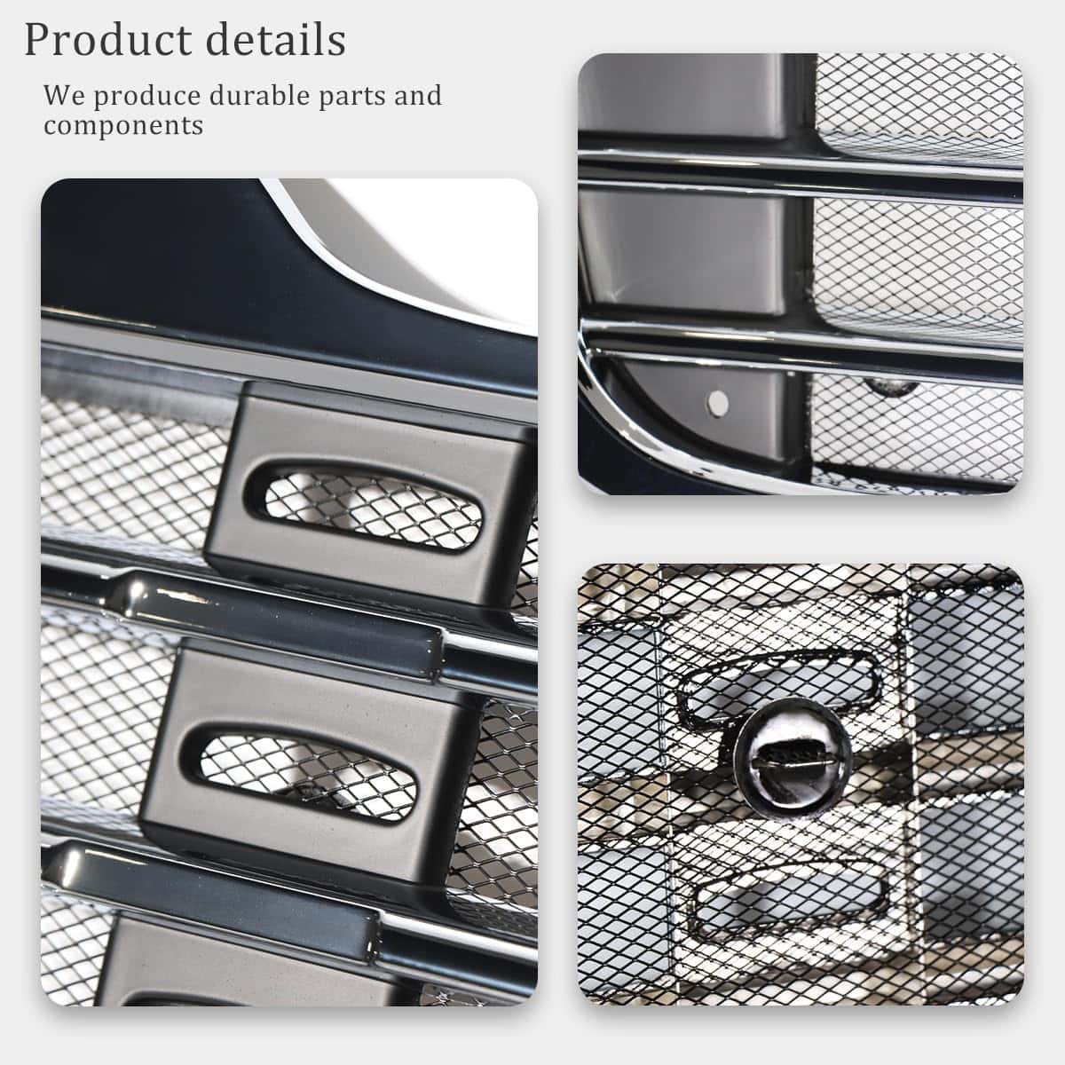 Además de su durabilidad, la superficie exterior de la parrilla ha sido cromada, lo que le da un aspecto brillante y resistente a la corrosión. La instalación de esta parrilla es muy sencilla, ya que está diseñada para ser un reemplazo directo de la parrilla original, sin necesidad de modificaciones o taladrado.