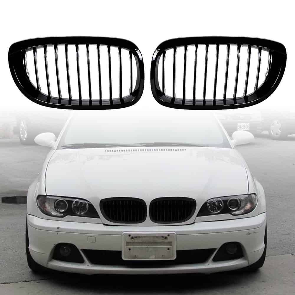 Paquete incluye: 1 juego de parrilla delantera (2 piezas, izquierda y derecha). Compatible con BMW E46 2 puertas Coupe/ Cabriolet 2003 2004 2005 2006 (modelos facelift). NO COMPATIBLE con modelos M3. Mejora el estilo exterior de tu vehículo. Número de referencia: 51137064317, 51137064318. Fácil instalación. No se requiere modificación. Ajuste directo.