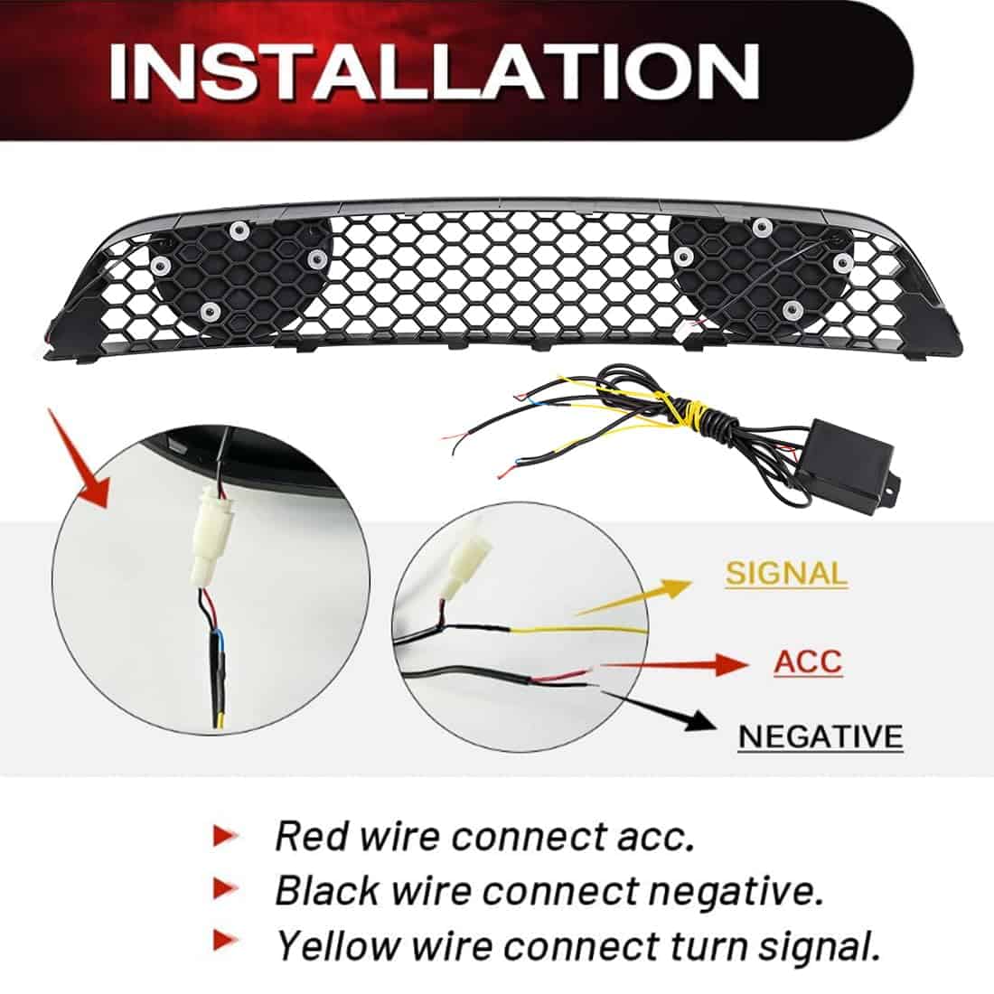 5. Contenido del paquete: 1 x parrilla delantera superior; 2 x luces de giro LED DRL