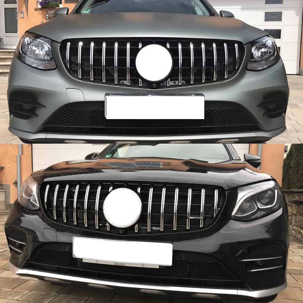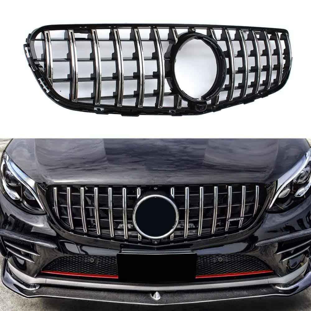 Especificaciones: -Tipo: Parrilla Delantera Estilo GTR -Material: ABS de alta calidad -Color: Plata Cromado -Colocación en el vehículo: Delantero -Tipo de ajuste: Reemplazo directo -Número de intercambio de pieza: Parrilla delantera para GLC W253/X253 -Otro número de parte: Parrilla para modelos GLC 2016 2017 2018 2019 solamente Ajuste: -Para Mercedes Benz GLC Clase W253 X253 GLC300 GLC350 2015-2019 -¡No es compatible con GLC63 GLC63S!