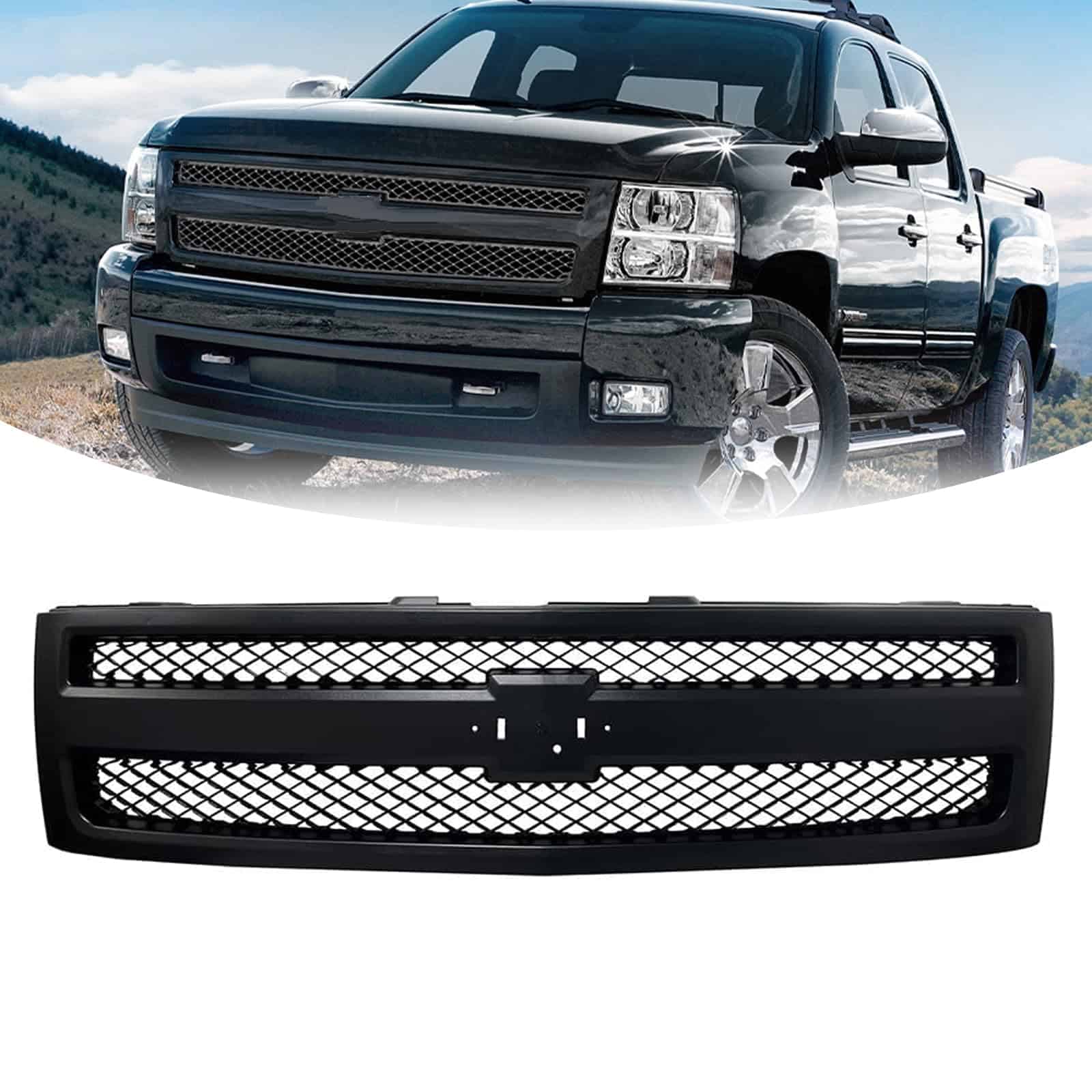 1. Aplicación: Parrilla para Chevy Silverado 1500 Hybrid 2009-2013, para Chevy Silverado 1500 XFE 2010-2013, para Chevy Silverado 1500 (submodelo: LS, LT, LTZ, WT) 2007-2013.
