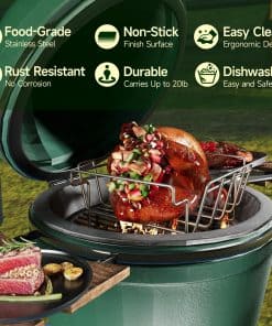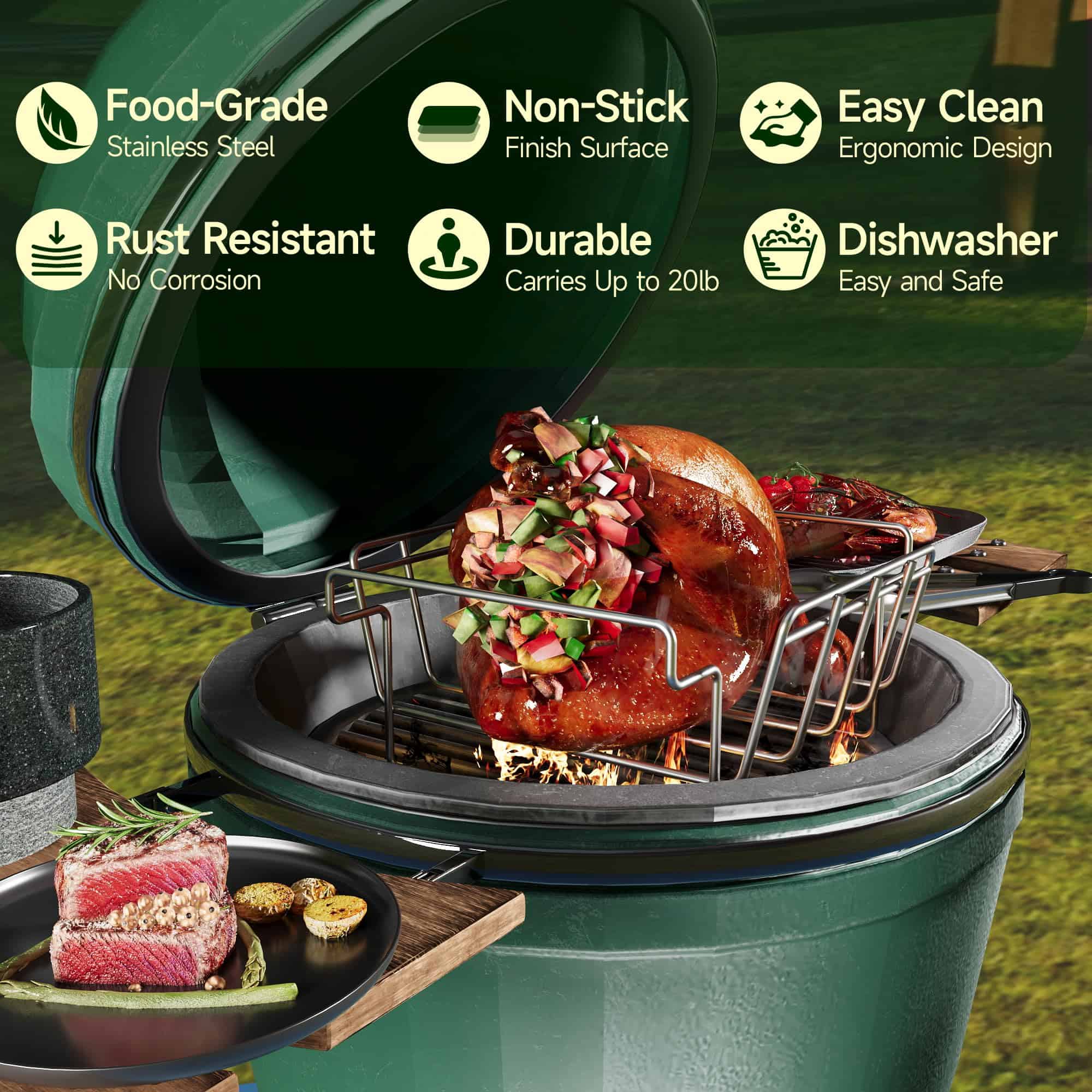 4. Presta Atención a la Compatibilidad: Nuestra parrilla para asar es del tamaño perfecto para la mayoría de las parrillas, ahumadores y hornos, como los Big Green Eggs Large & XLarge, Primo, Kamado ceramic grills. Ideal para Weber y otras parrillas de diámetro grande de 18″ o más.