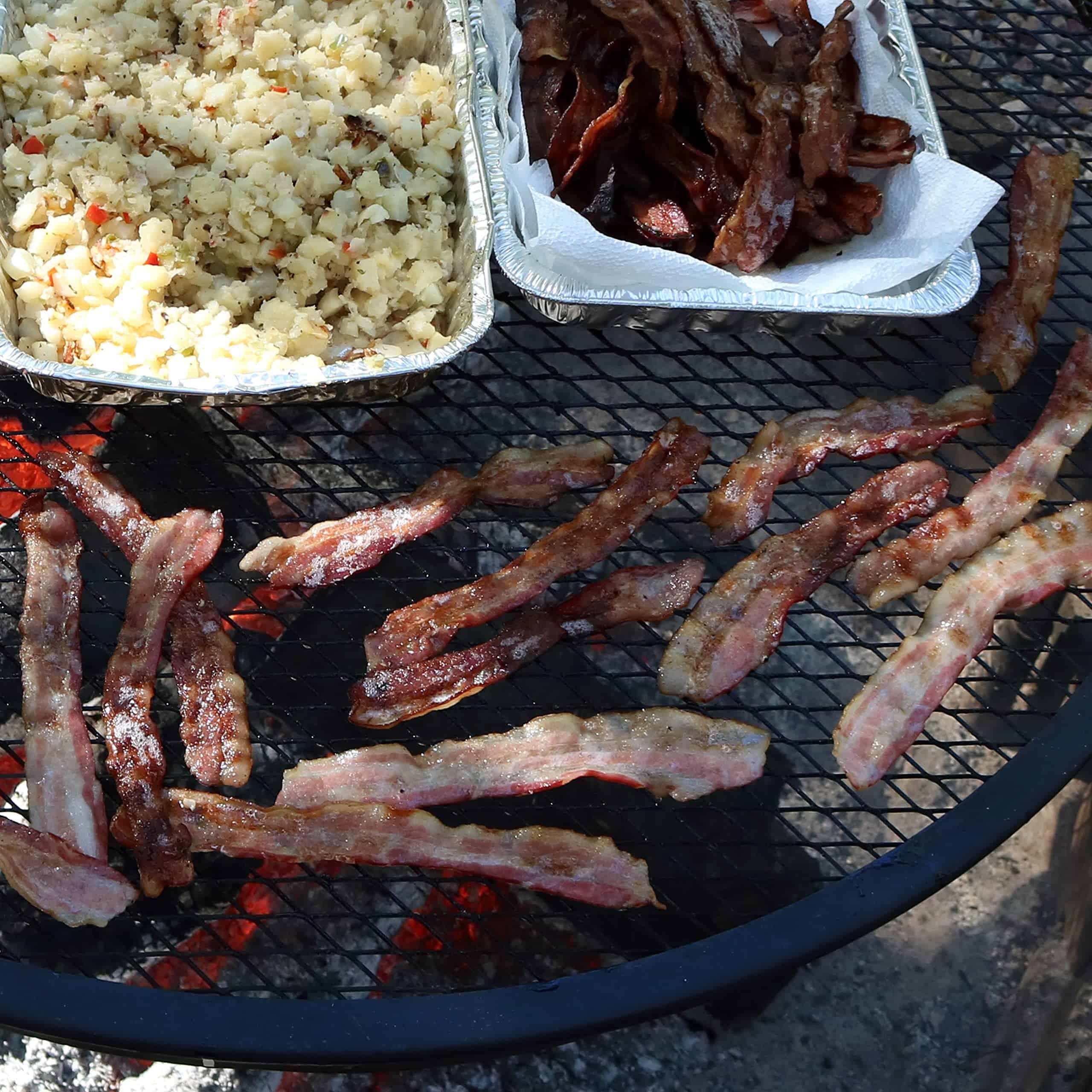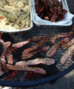4. PARRILLA DE CAMPING PARA COCINAR: Esta parrilla no requiere montaje. Se coloca encima del tazón o dentro del tazón de la fogata, lo que brinda la libertad de cocinar múltiples tipos de alimentos.