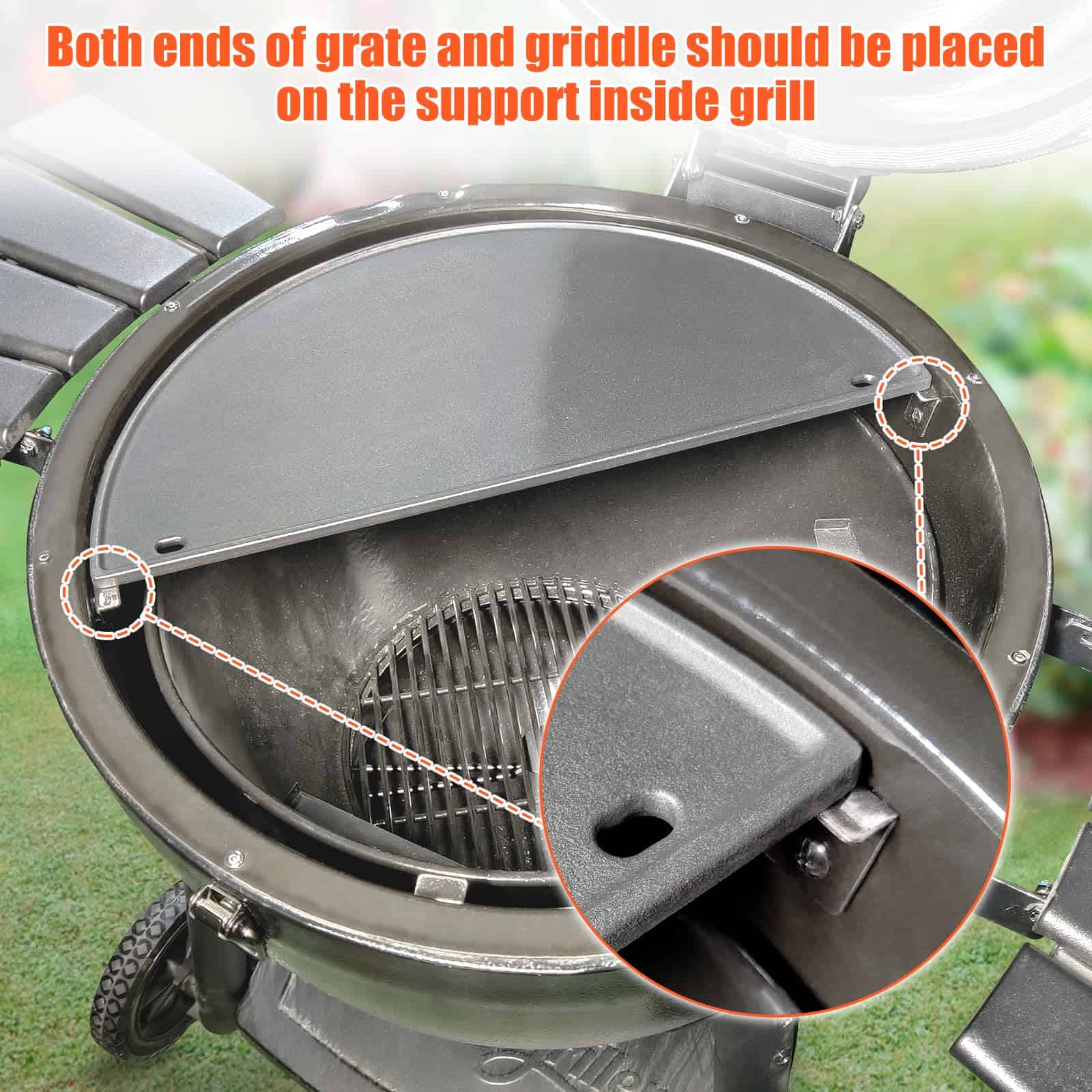 1. AJUSTE PERFECTO: Se adapta a la mayoría de los grills de carbón interiores de 20 pulgadas de diámetro, incluidos Char-Griller Akorn Kamado Ceramic Grill 16620, E16620, 06620, 6020, 6520, 6620, 6719, 16619, 16820, E56720, E6520, parrillas de carbón de caldera, Pit Boss K24, Louisiana Grills K24, etc.