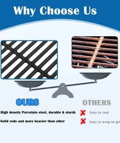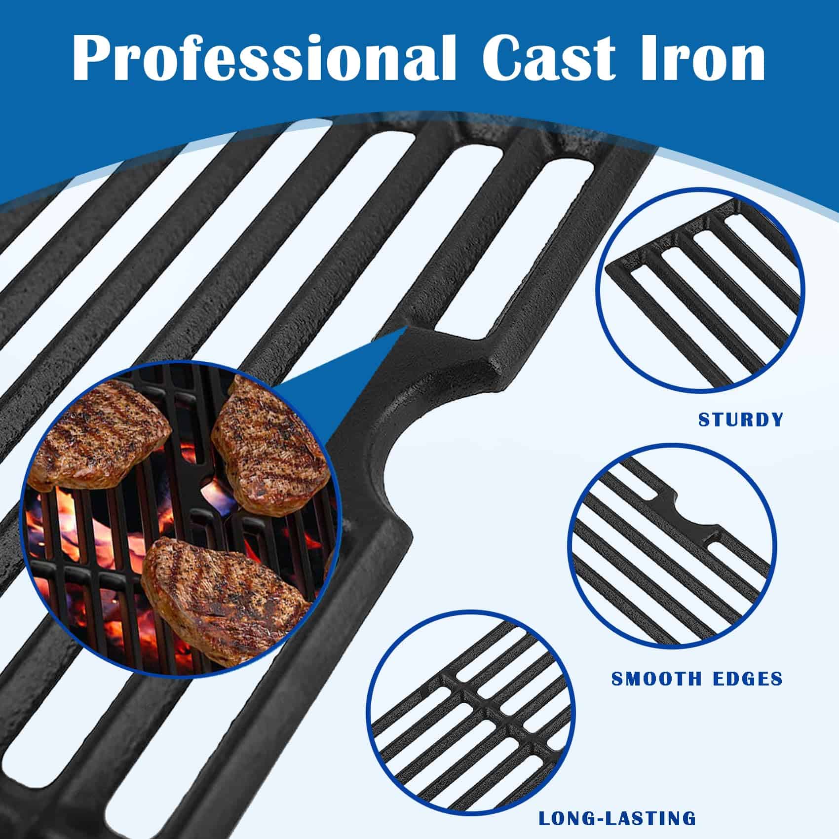 Construidas con hierro fundido de alta calidad, estas parrillas de barbacoa están diseñadas para durar. Con una retención de calor excepcional y cocinado uniforme, ofrecen resultados de calidad profesional durante años, convirtiéndolas en una inversión confiable para su experiencia de cocina al aire libre. Las dimensiones de la parrilla son 16.5″ x 13 3/8″ cada una; 16.5″ x 26 3/4″ en total; son repuesto para Kenmore 146.23680310 146.30213510, Kenmore 146.23770310 146.47468610 146.47469610 146.22124910 640-06446338-3, Kenmore PG-40403SOL 40100101. Con su capacidad de retención de calor excepcional y capacidad de generar calor intenso, estas parrillas están diseñadas para ofrecer un sellado profesional, atrapando los jugos y sabores, y proporcionando marcas de parrilla de calidad de restaurante en sus alimentos. Estamos comprometidos en garantizar su satisfacción con nuestro producto y estamos listos para atender cualquier inquietud o pregunta que pueda tener.